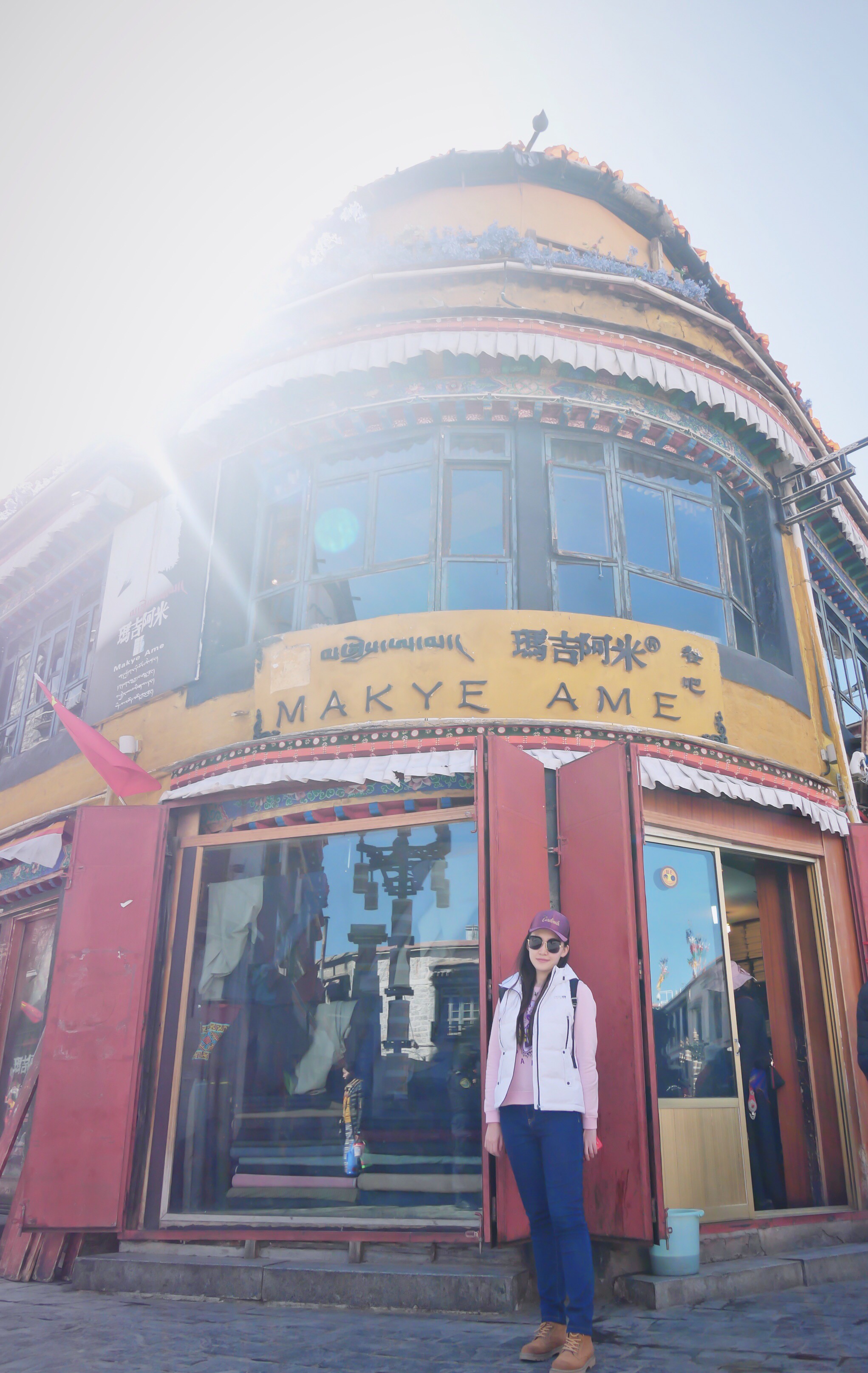 八廓街的建筑大多是白色的建筑,只有八廓街东南角有一栋涂满黄色颜料的两层小楼,那就是网红餐吧玛吉阿米,玛吉阿米这个名字,相传是仓央嘉措情人的名字。而当年仓央嘉措与玛吉阿米幽会的地方,正是玛吉阿米这个黄色小楼。