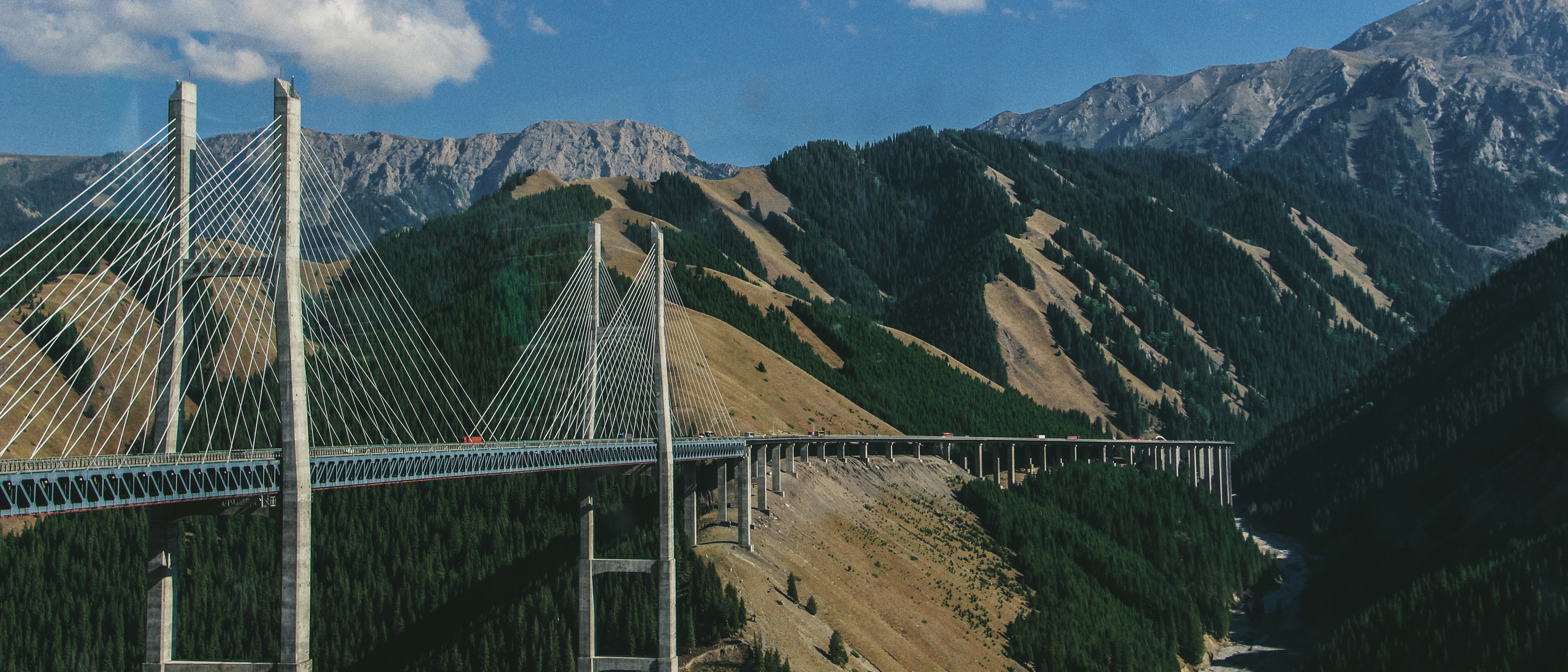 「这一段路穿梭在伊犁河谷边的黑戈壁里,一边是塞上江南般满目翠绿,杏树梨树的枝条浅浅地垂在河湾沼泽上,一边是裸露粗糙的岩石,是我们印象中的新疆——荒芜、热烈而粗砺。」