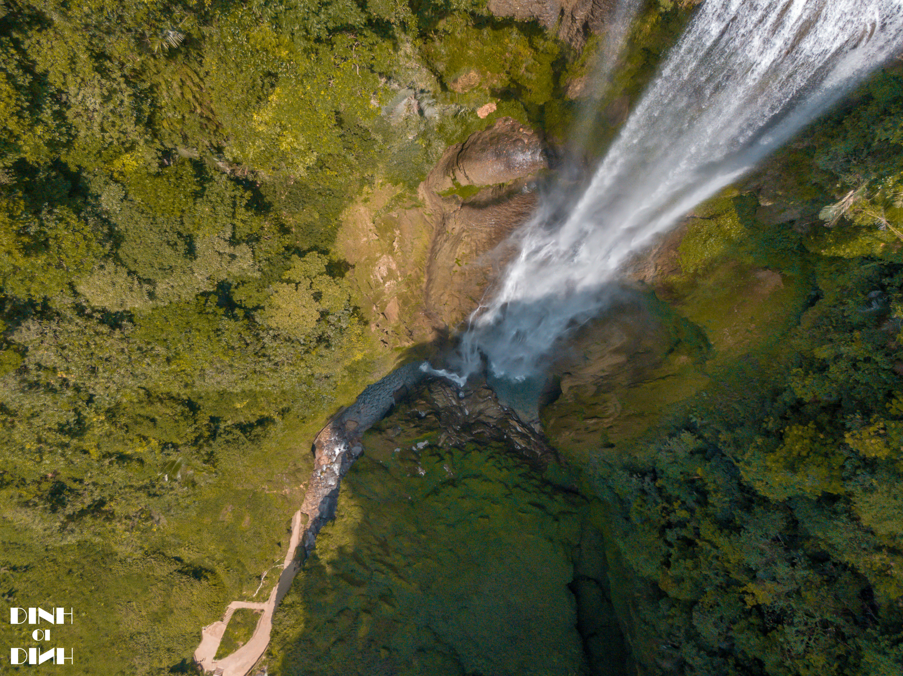 来了,来了,它来了,来到瀑布正对面,小飞机起飞了,高空的视角还是最漂亮,一条翠绿的小溪在去群山中蜿蜒曲折,潺潺的流着。正好三级台阶形成瀑布,每一级的落差并不高,称不上飞流而下,但是好在层层叠叠的共有四层,形状像个扇形,可以走到瀑布下方近距离接触。