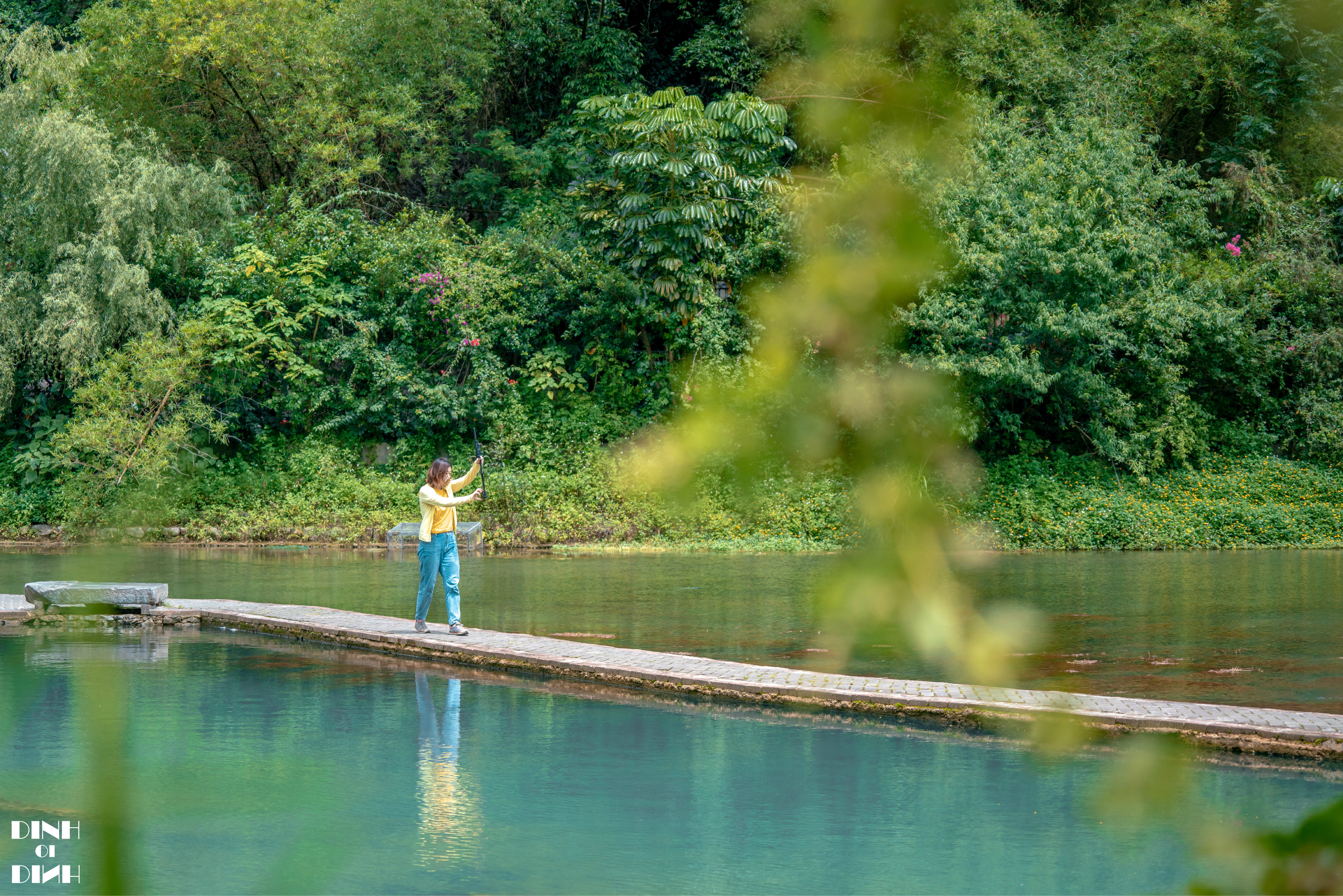 念安屯村口的15孔拱桥,建于清代,古韵悠悠,游览鹅泉的竹筏都停靠在桥的两侧,在念安屯的一侧可以感受到原生态的田园生活气息,泉边浣衣、赶鸭子、放水牛,第一次来的时候我就发现这边有很多农家乐,于是这一次我没在县城订客房,我选择在这里鹅泉边上住一晚,也因此剩下了一大笔费用,这个最后攻略的时候再说。一大早拉着小伙伴先来15孔桥这里拍个小视频。
