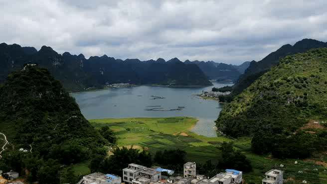 太喜欢这上帝视角的渠洋湖了。湖水、农田、村庄、喀斯特山丘,以及将一切串联起来的公路。