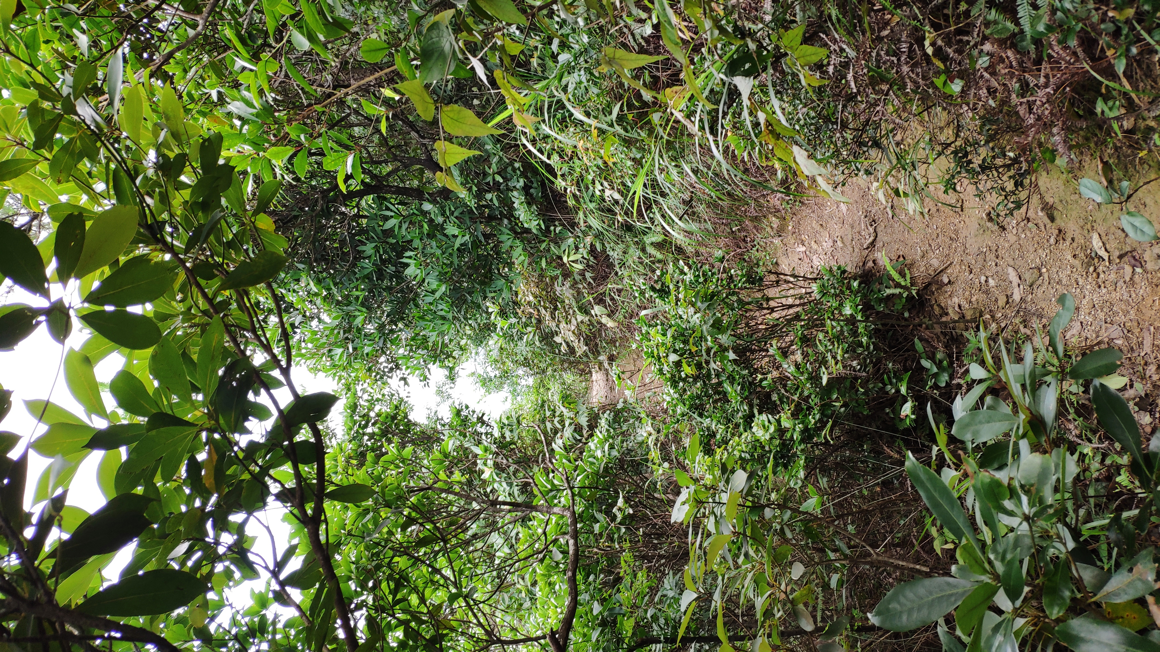 第三段:再往上就是灌木丛了,0.5公里,爬升900到1040,从灌木是密集的,路是满当当的,脸是不能要的,有几片箬叶竹林,真的很密集,钻进去都看不到人,脸都要刮花了,有点儿坡度,不过已经是较为和缓了
