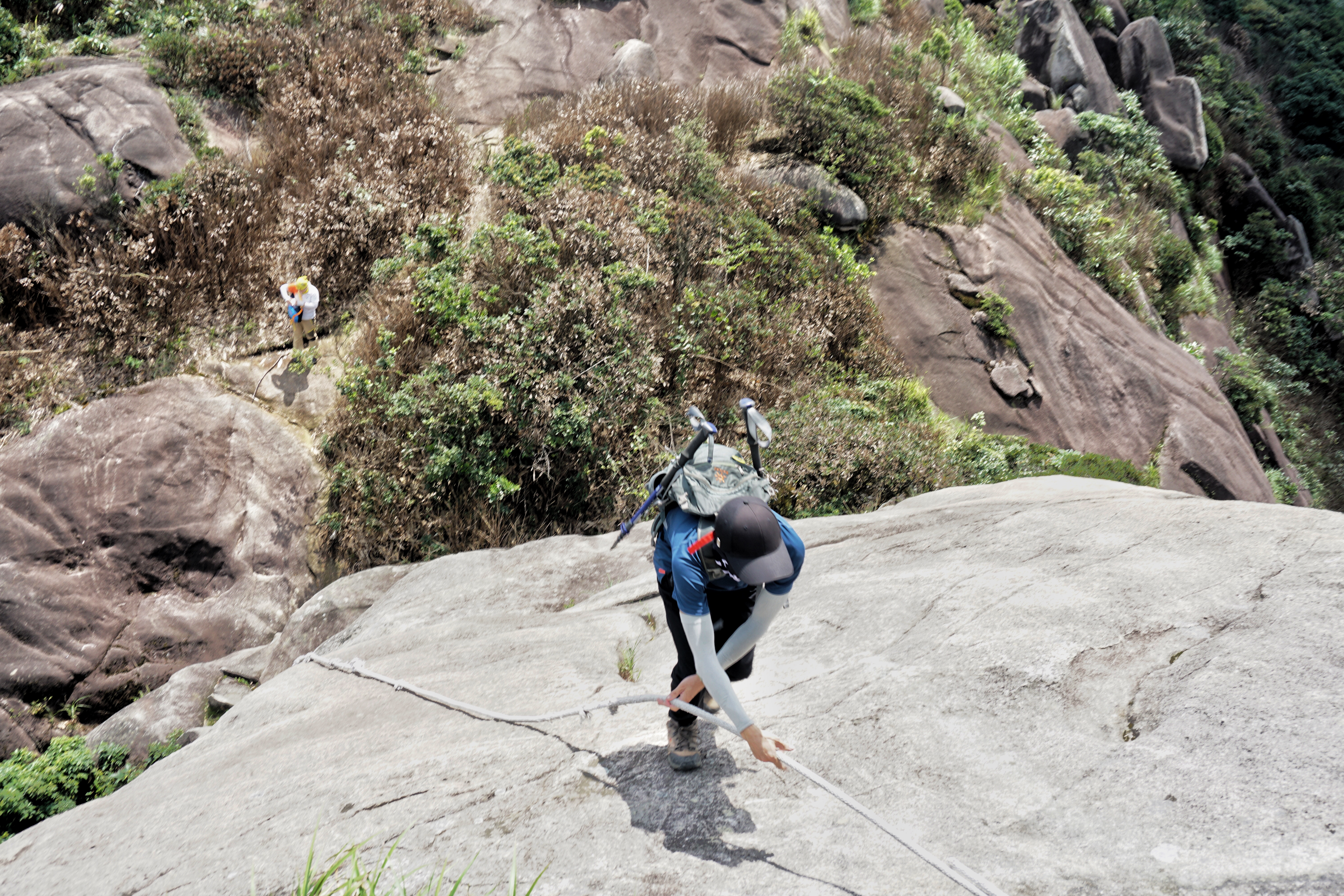 在上山第一段时,碰见一位大哥光膀子在山泉水黎降温。这位大哥是和朋友一起过来的,3个人,走到这里感觉不对劲,出汗太厉害,有中暑迹象,可能是前一天晚上吹的空调,已经有点感冒迹象,今天又来爬山,如果继续走,很可能会中暑,大哥让朋友先走,自己待凉下来之后就下撤了。