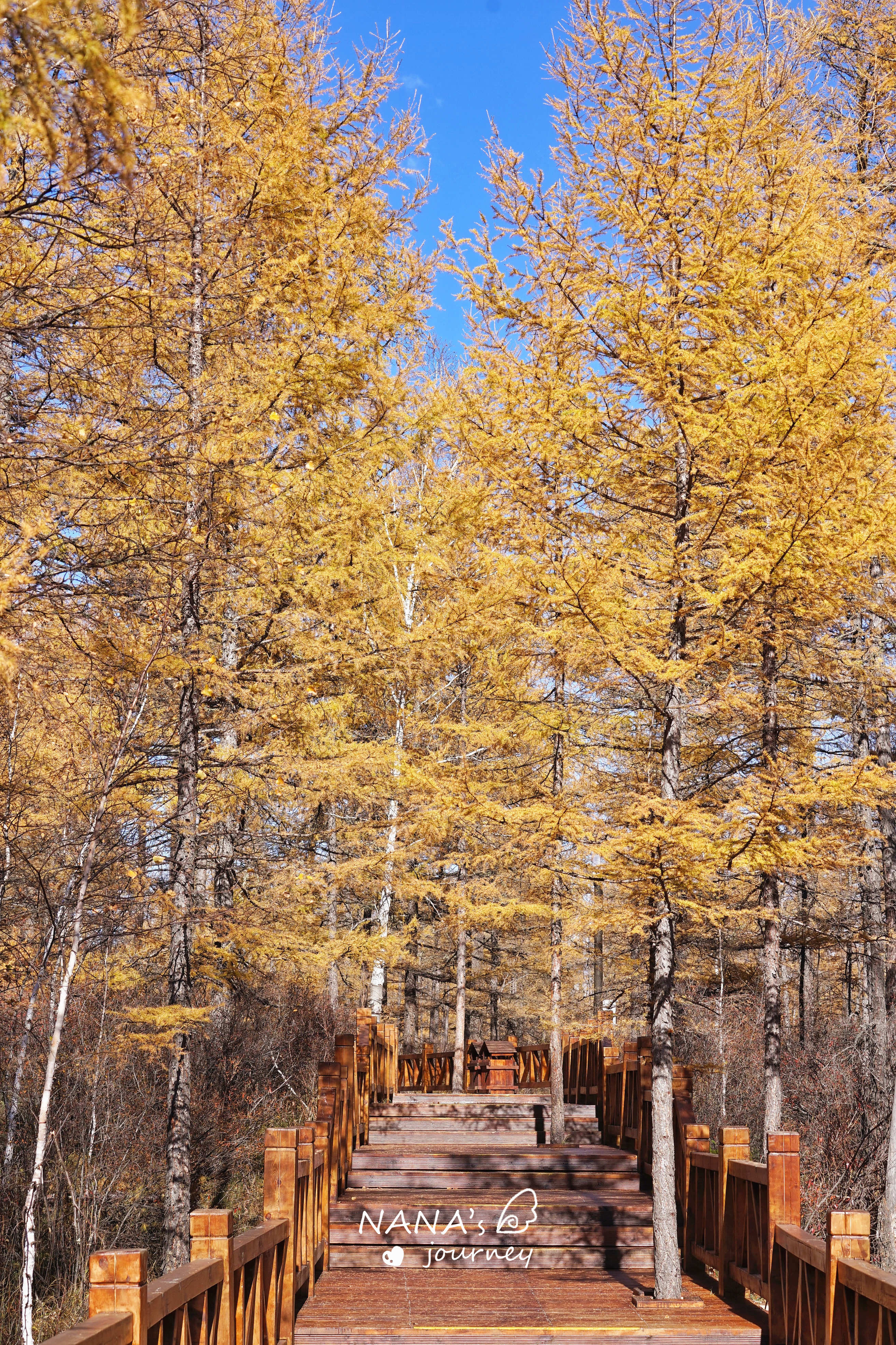 3、追秋线,主要按树的总类来分。黄色主体可以用一些比较冲撞的对比色, 比如 黑色,玫红这种,白色会很仙气,不过在黄叶期间有点过于朴素,因为在 阿尔山 穿耀眼色登山服的阿姨叔叔比比皆是,不能输了气势!