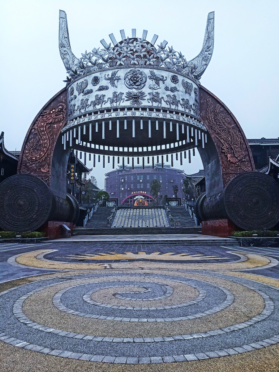 信团鼓楼:十一重檐八角攒尖顶,高25.9米,占地面积78.3平方米。