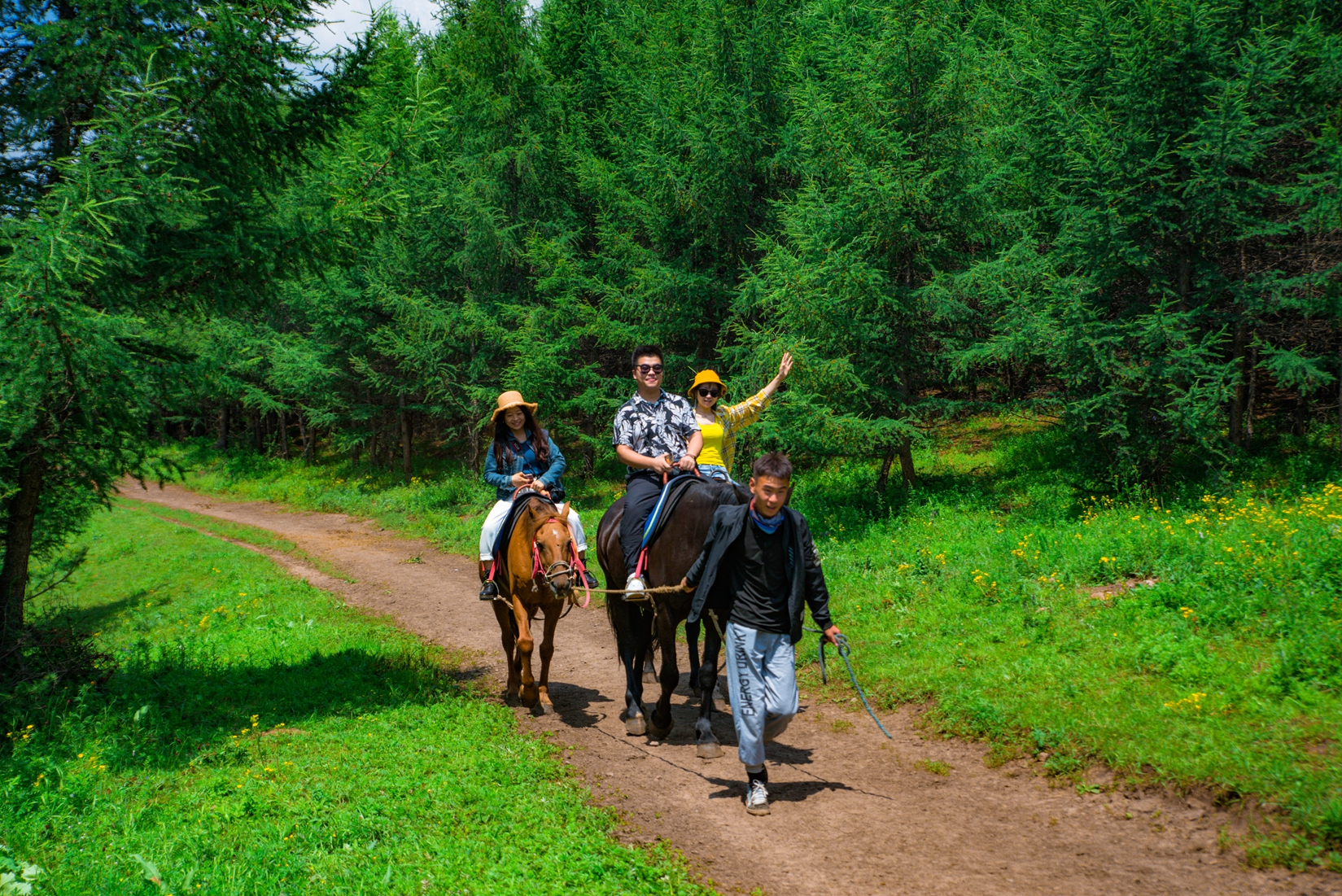 夏天的七彩森林,可以走在高耸的树梢,可以云亭俯瞰山河,也可以骑马漫步深林,放松心情体验丛林部落里的休闲生活。