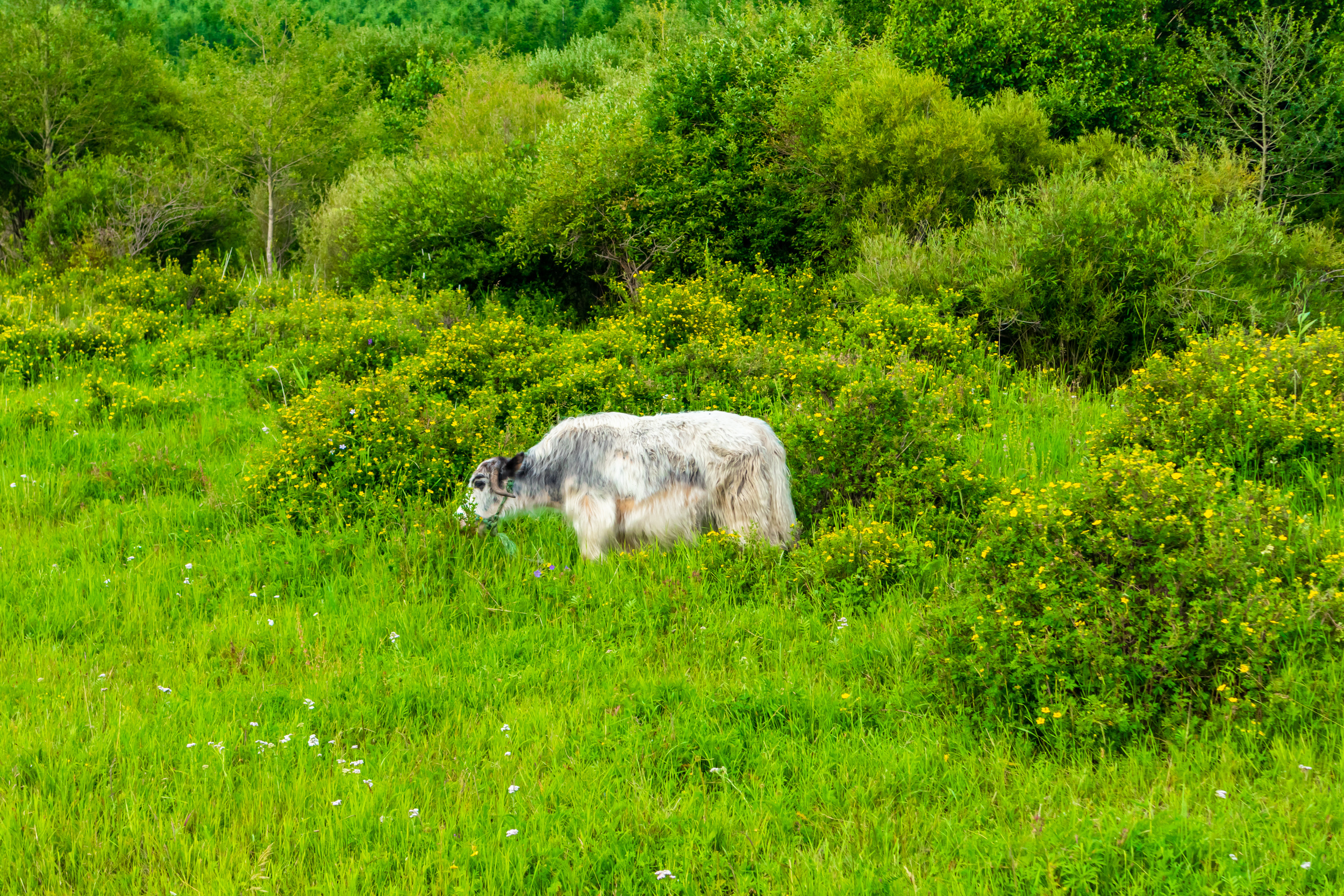 七彩森林的动物园,对于马儿骆驼来说,那是相当的自由,除了一些容易走丢的动物,比较听话和认家的老牛,骆驼,马儿在我们去参观的时候,都在动物园外的草地上吃草。