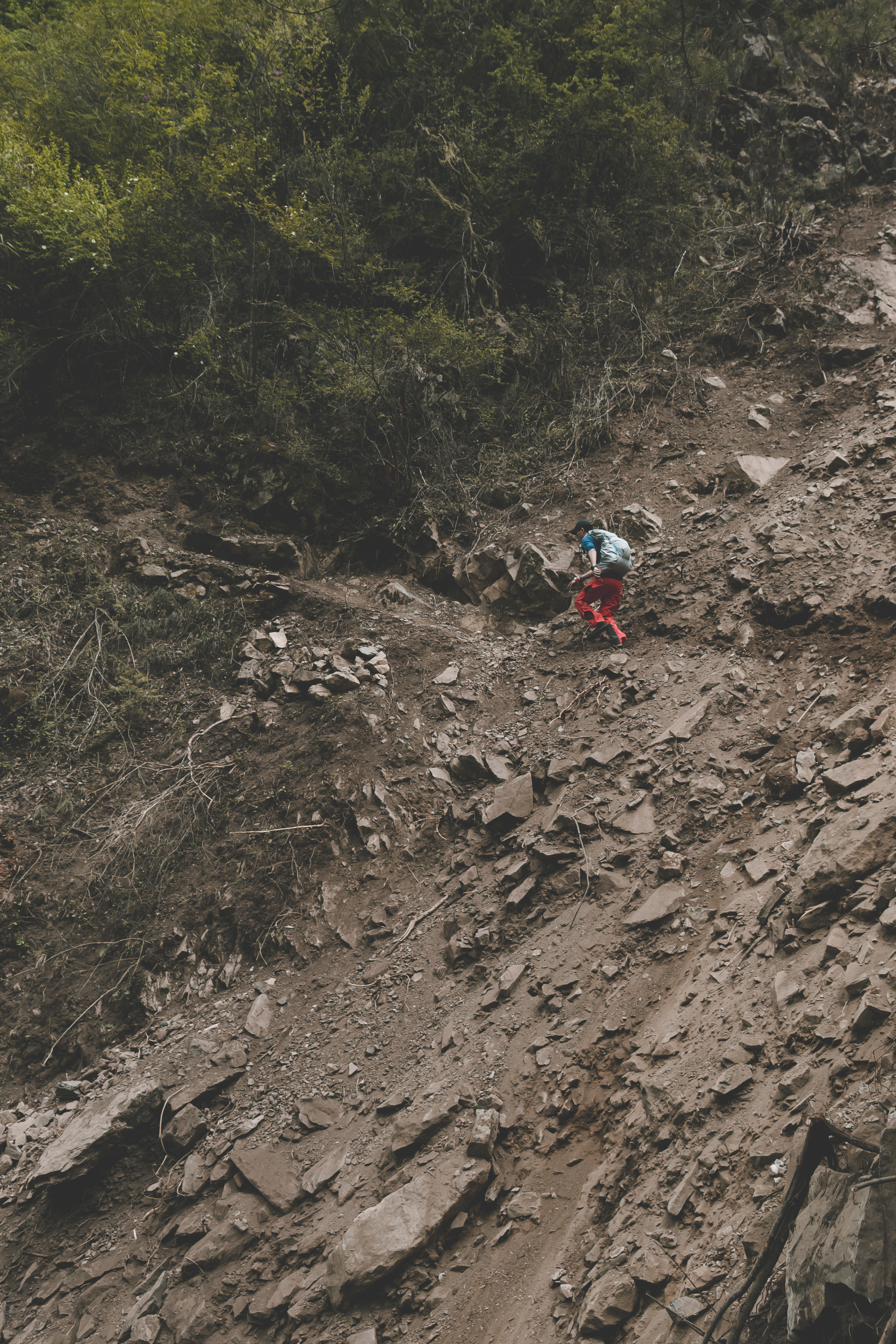 一直担心这陡峭的流石滩,能爬的上来,但要怎么下去?没想到碎石虽难爬,但也可以利用它易滑这点,溜下去。下降时用脚后跟踩入碎石中,借着石头滑落的速度人也跟着一脚一脚滑下去。利用山石的阻力保持平衡。看起来危险,但做起来容易,体验感好极!但注意找碎石比较小,土质比较松的地段滑就好了。