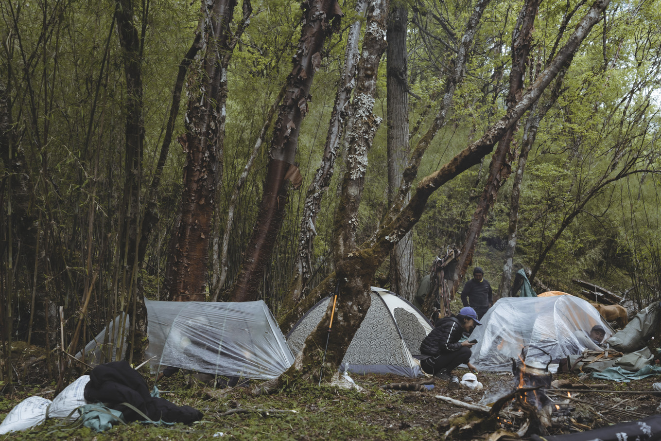 沿山谷河流行进,不会很晒。虽有上坡下坡,但第一天大家劲头十足,四五点便陆续抵达营地。只是山林景色单一,相机基本上没有掏出来,无人机直接丢给马帮,计划着为后面四天省电。竹林营地(也叫涨价营地)顾名思义,隐在一片竹林中,星空是没得盼了。且密林多蚊虫,面前总绕着那么几只,恼人的很。也不知是什么品种,被叮上一口,包包半个月都消不下去,跟沙蝇有的一拼。不过林中氧气充足,虽海拔3500m也不易高反。