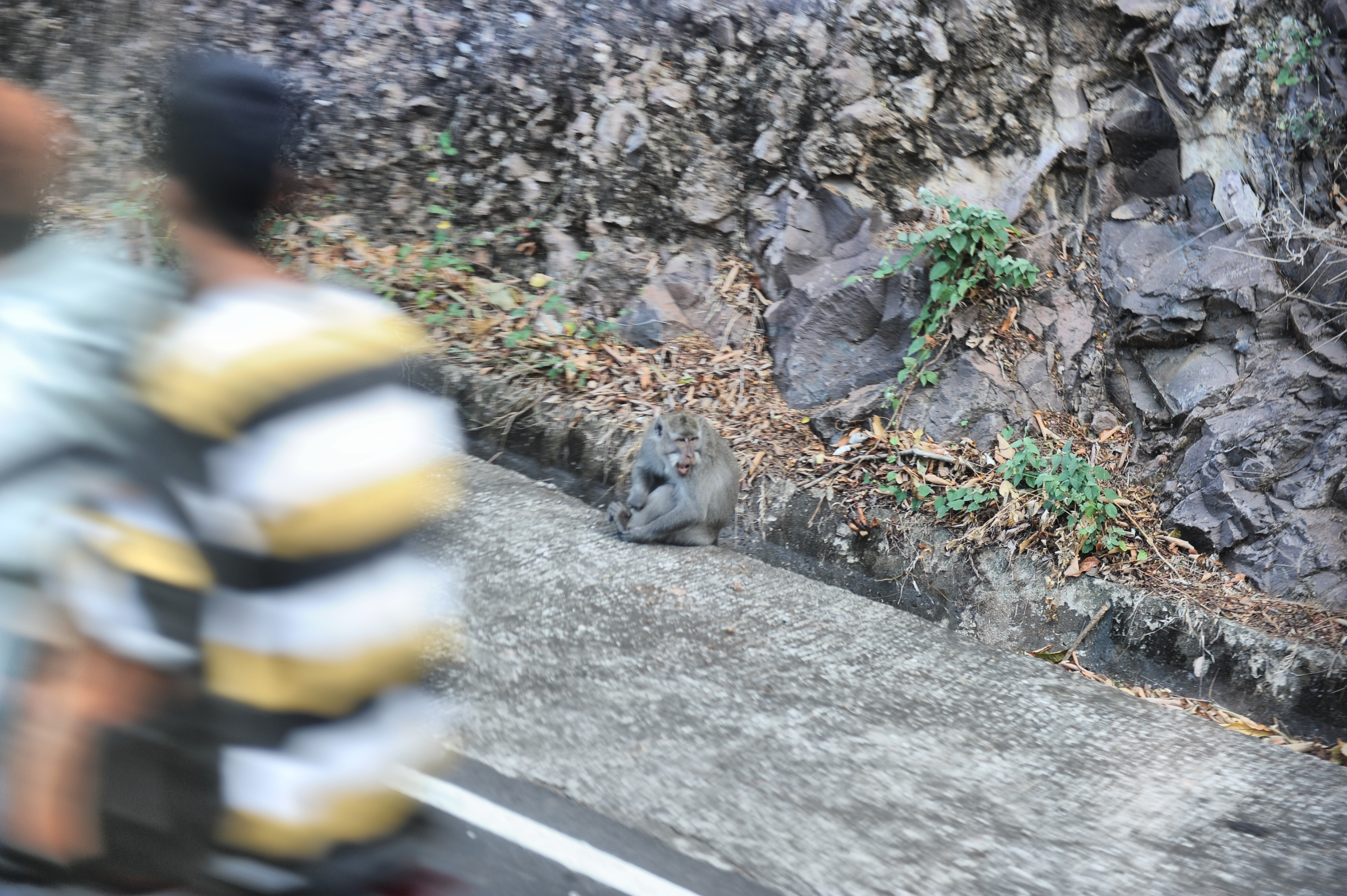 咱们这儿是遛狗~印尼那儿是遛猴~路边就是神出鬼没的孙猴子~
