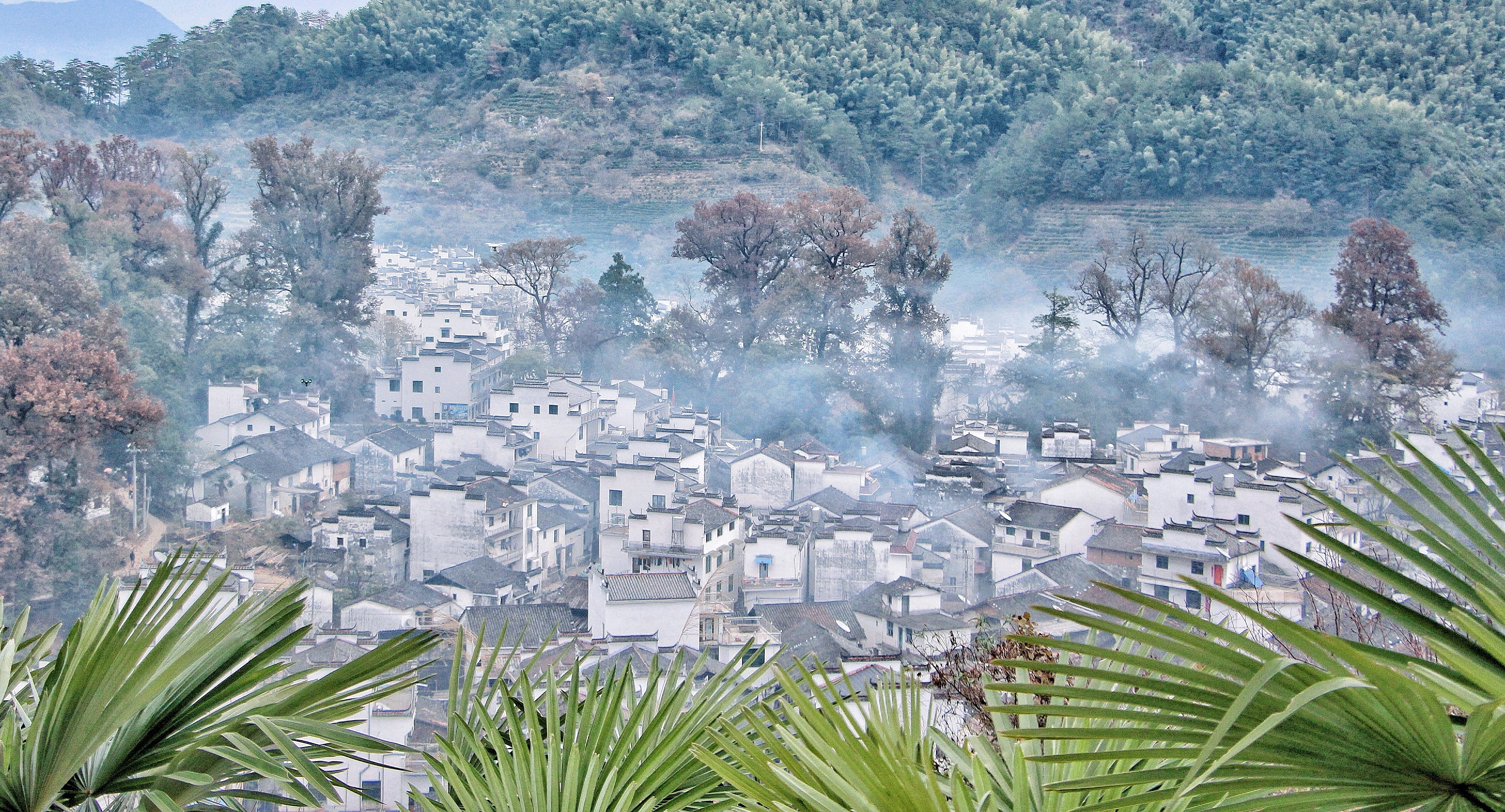 对于远道而来的摄影爱好者而言,拍摄的绝佳时机便在此时。云山雾绕,古树村落,鳞次栉比,好似一幅徐徐展开的山水画卷。