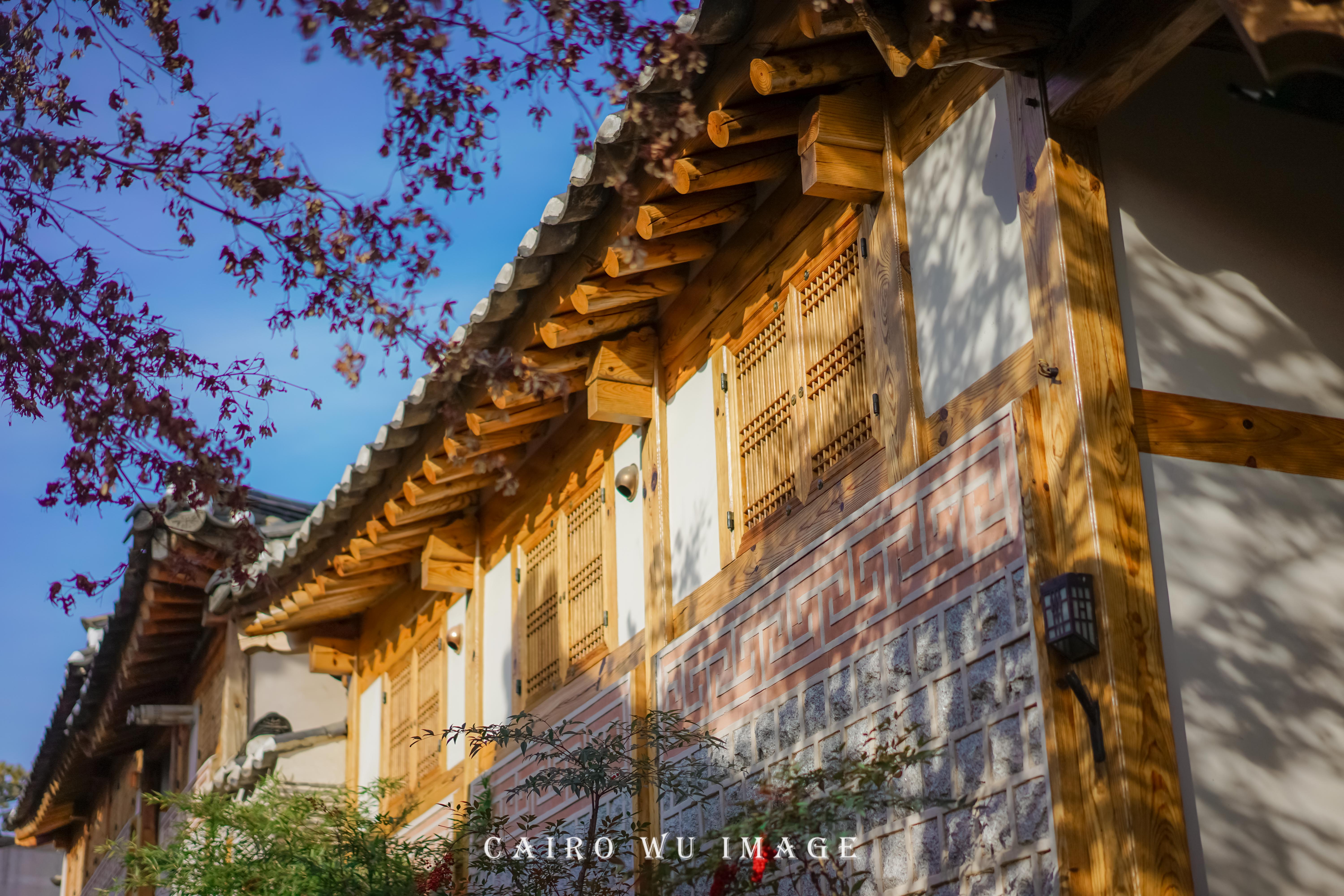 北村韩屋村位于景福宫、昌德宫、宗庙之间,所以走在韩屋村的边缘一眼就能望到景福宫,离得很近。现今这里有许多 韩国 传统房屋,是私人民居。从景福宫到这里不是很远地铁一站路,步行15分钟左右。据说这里有900多座韩屋,穿着韩服走在韩屋村,可能是韩服最佳场景了。