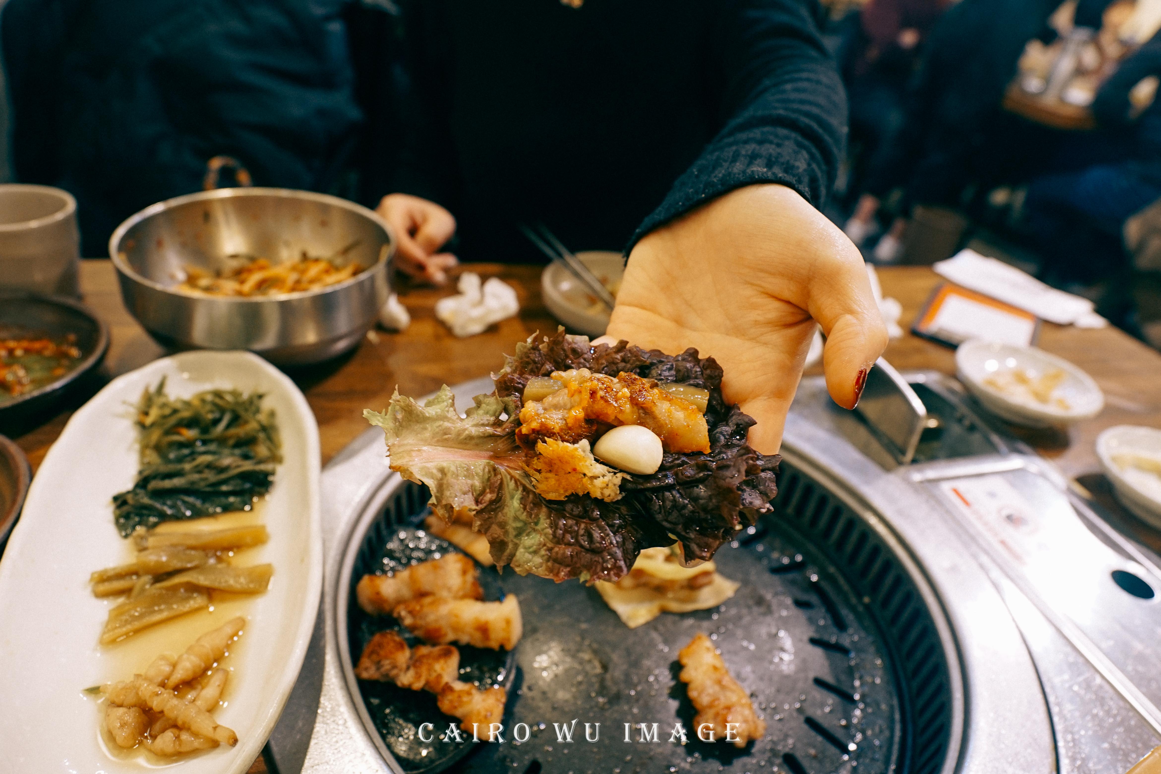肉的味道烤出来吃得到是真的香,还可以用泡菜包着肉和拌豆芽一起吃,反正怎样搭配都可以,各种小菜都比较解腻。