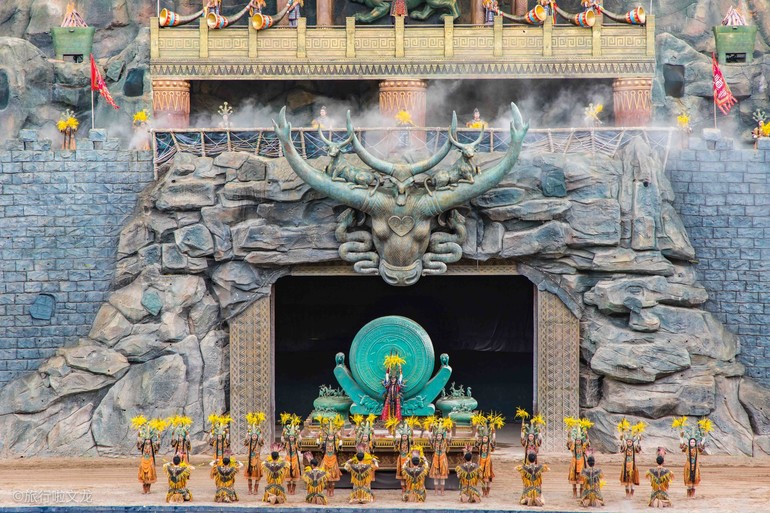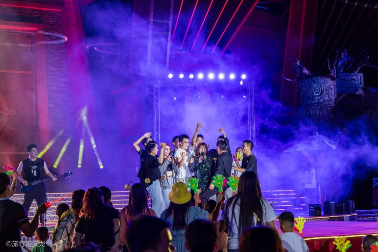 以大摆锤为背景,可以欣赏到精彩神秘有民族特色的舞蹈秘境之鼓。