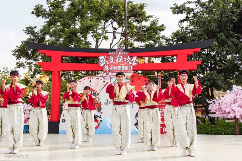 在游乐间,还能欣赏到有日本风情的和风之舞,在游玩中可以注意听到乐园广播提醒。