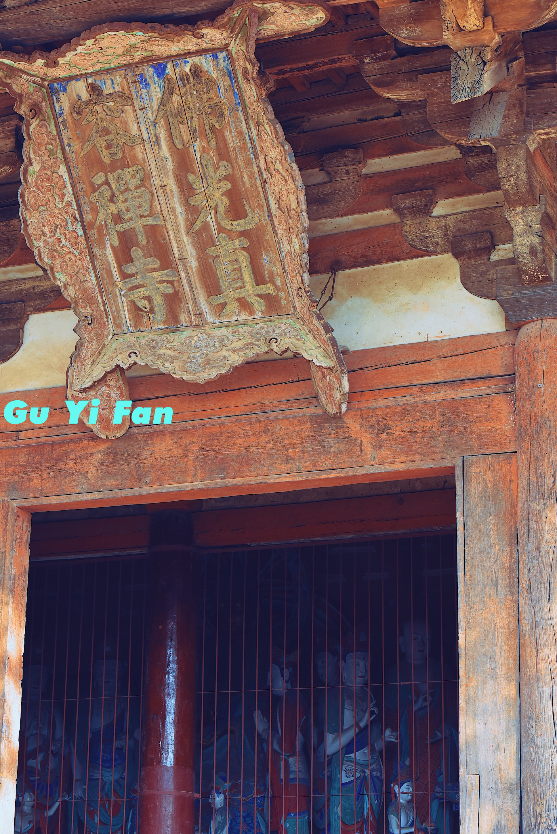 这是东大殿上的牌匾,此匾位于东大殿明间前檐下,木制,书写“佛光真容禅寺”字迹肥厚遒劲,颇具唐颜鲁公遗风。