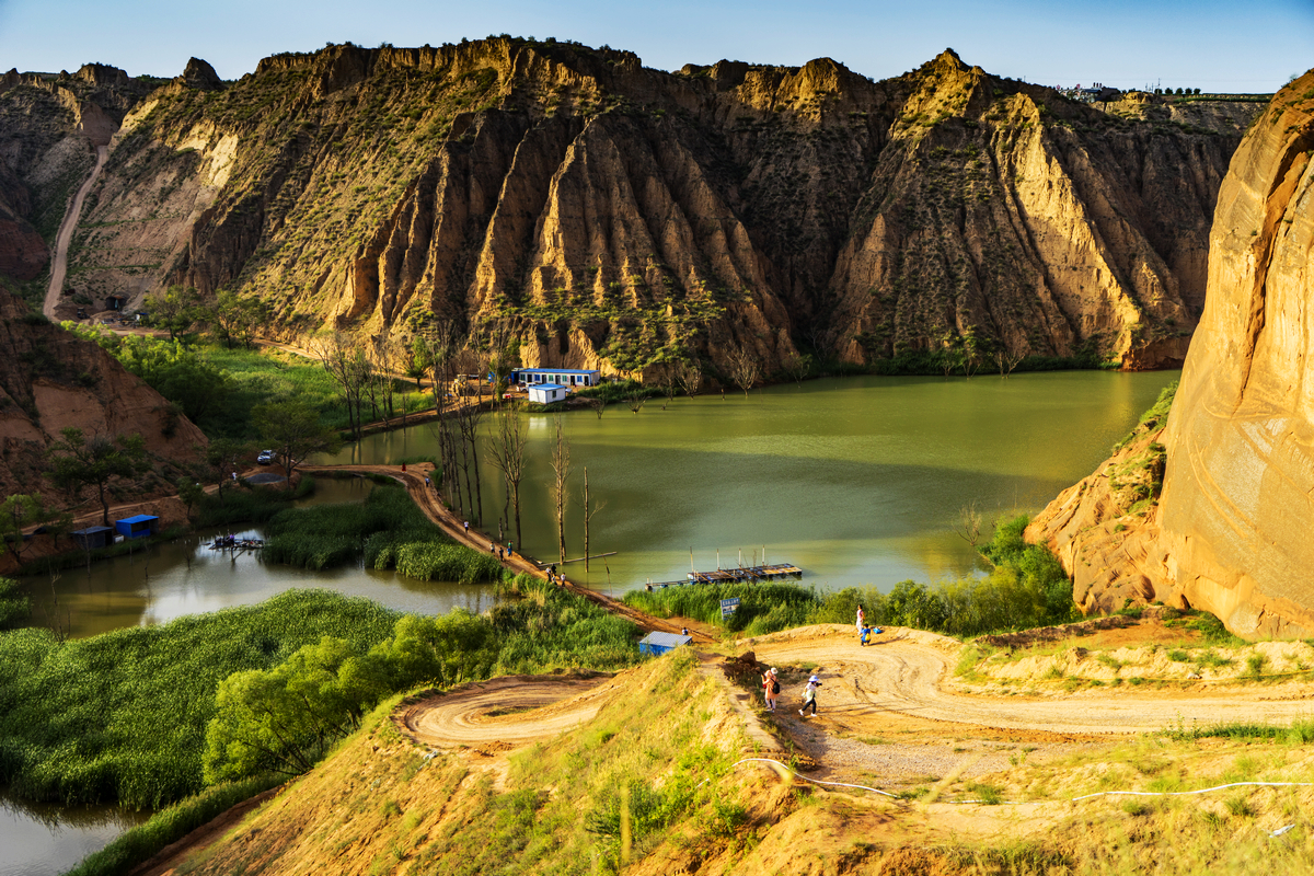 清水湾是黄河众多湾湾中的一湾,它那巨大的形体,在夕阳的映衬下,犹如一只巨大的鲍鱼,静静地等待着我们,它见证着黄河的历史演变。乾坤湾也是黄河中的一个拐弯,它的地貌独特,由于黄河长时间的洗礼,它形成了一个分开的小岛,远远望去就好像太极里的太极图,还有它的入口和出口形成了两条湾湾的尾巴,俯视下去犹如一个巨大的欧米茄符号。