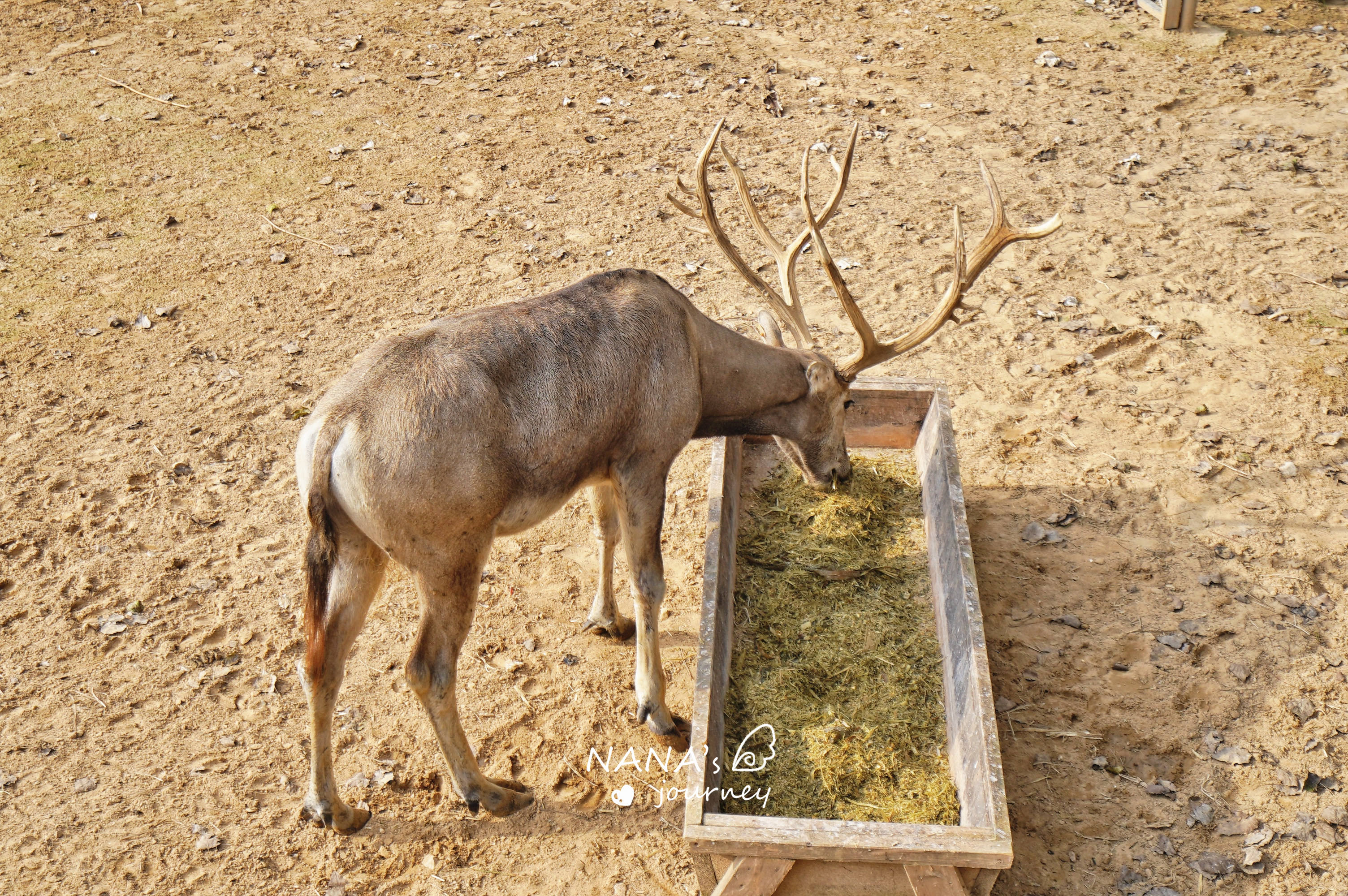 原来正好碰上喂食时间,麋鹿都去吃饭了……