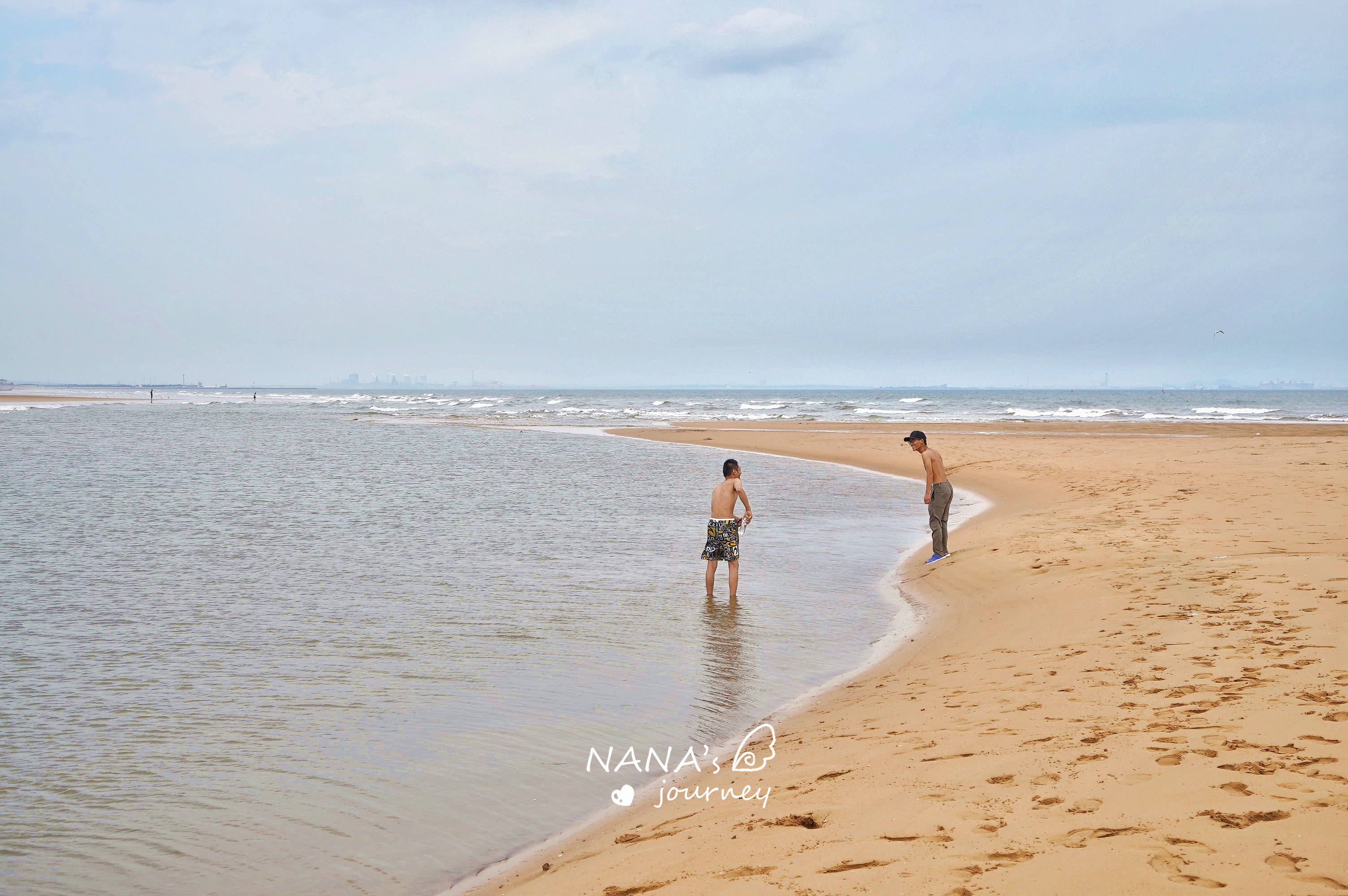 沙滩看似有一片泥滩,实际上是退潮形成的,所以沙滩的平缓也让质量更加的好,玩水更加的安全。沙子踩着也非常的柔软,很是舒服。