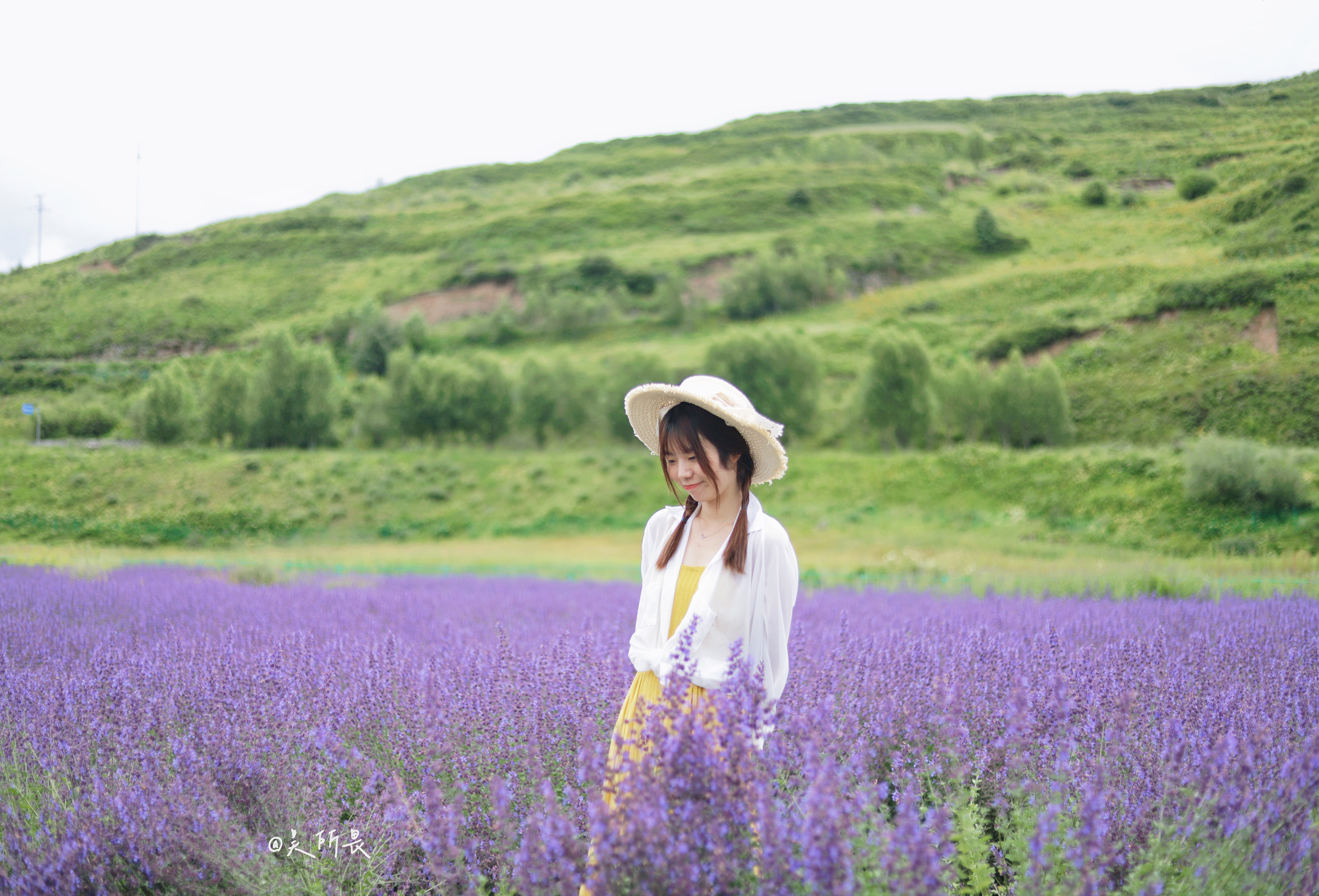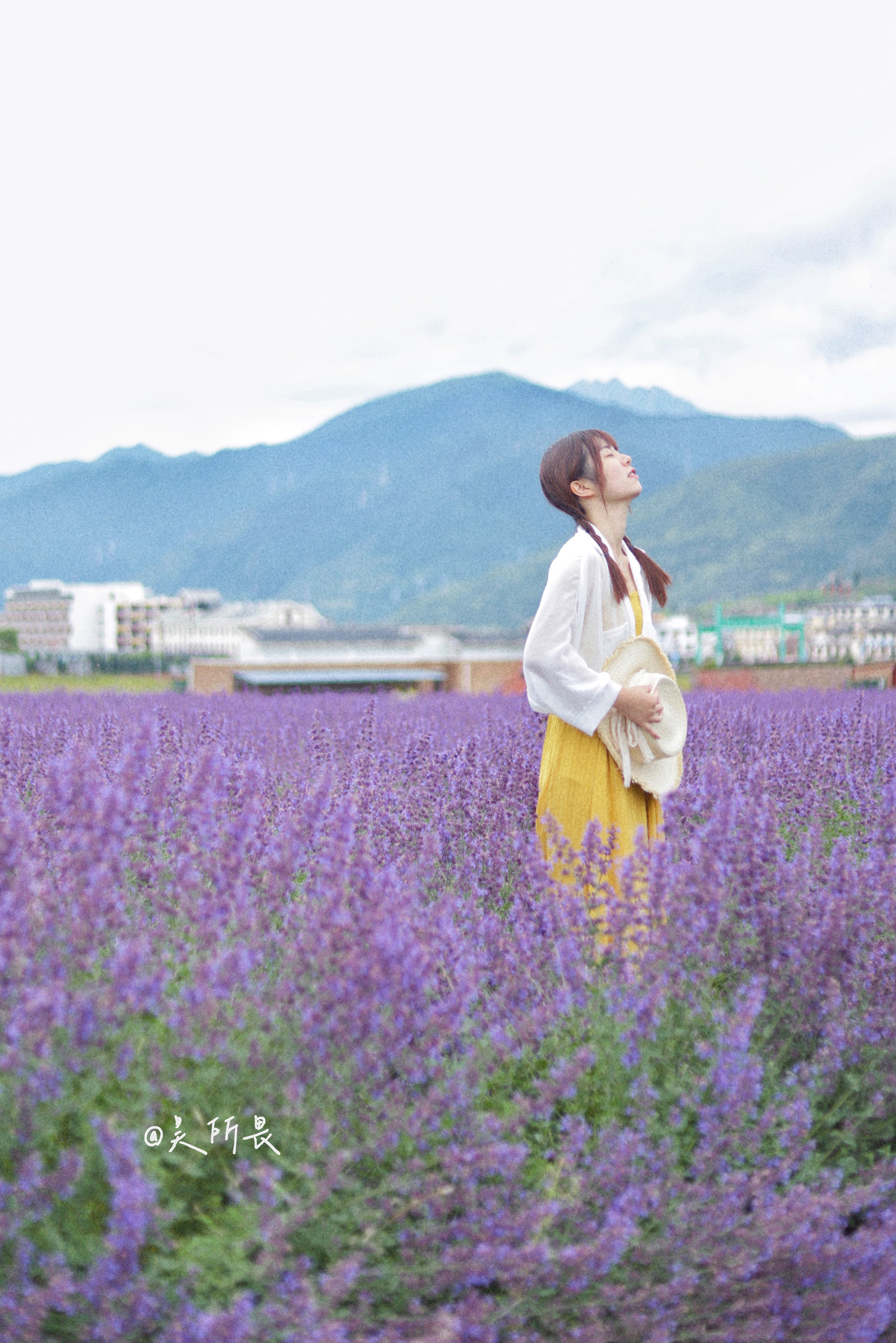 蹲在薰衣草里,利用一点薰衣草做前景,可以使照片看起来更加唯美哦!