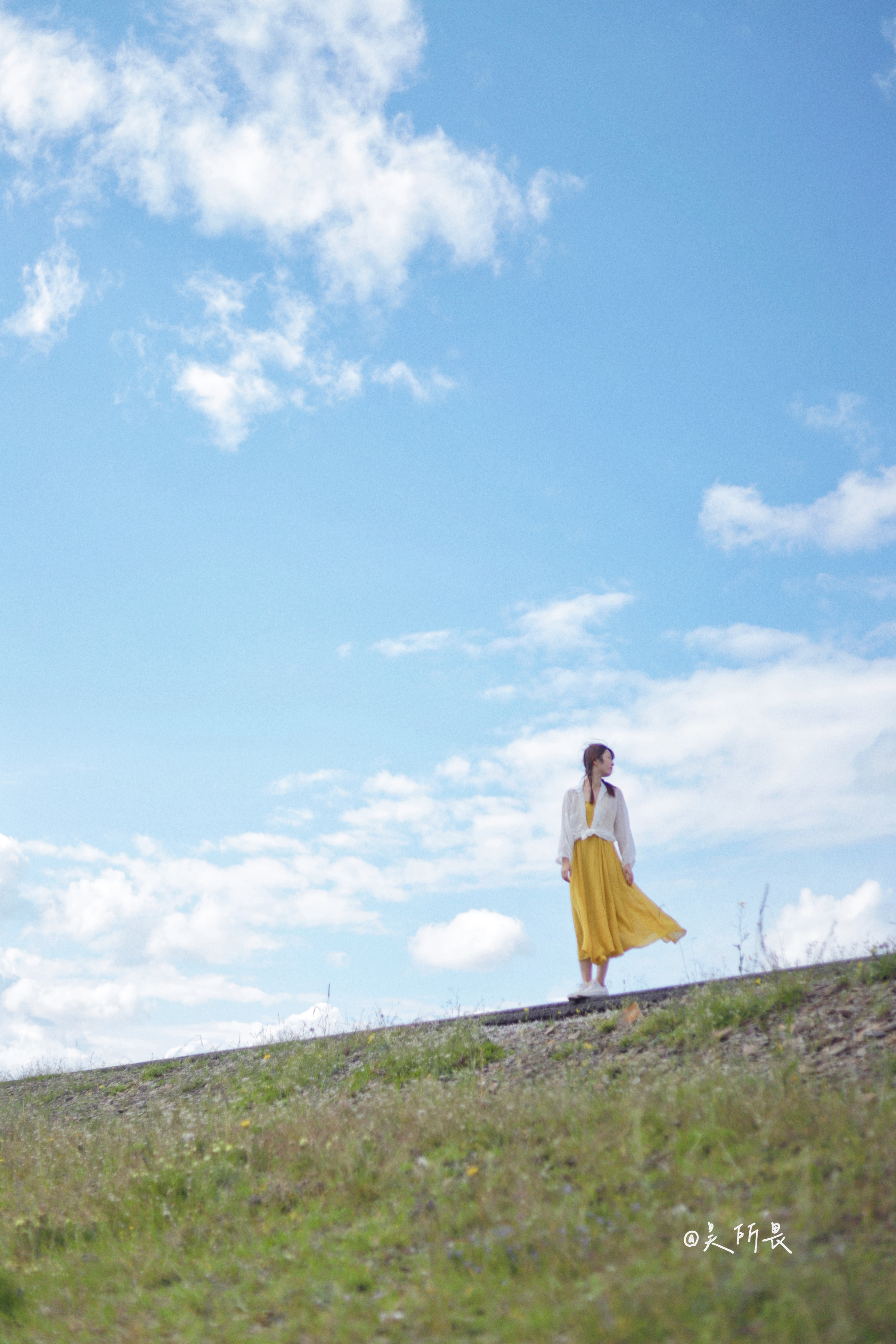 我在公路边来回行走,打开相机的连拍模式让同行的伙伴抓拍,最后有了这一张我超喜欢的照片。
