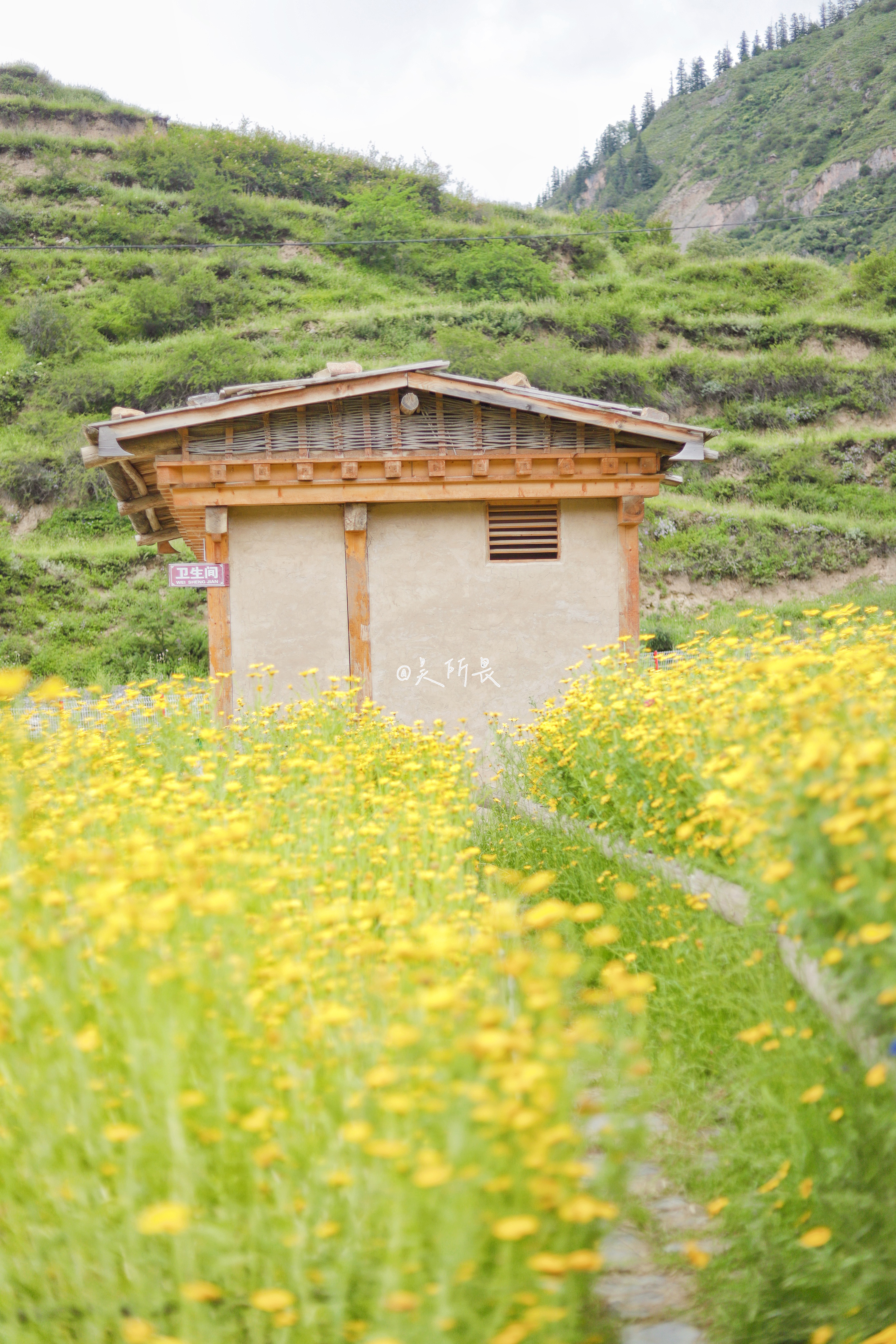 从景区门口,到景区的路上,我们经过一个观景台,看到了一大片黄色的花花,我们立马下车开启了拍摄模式。