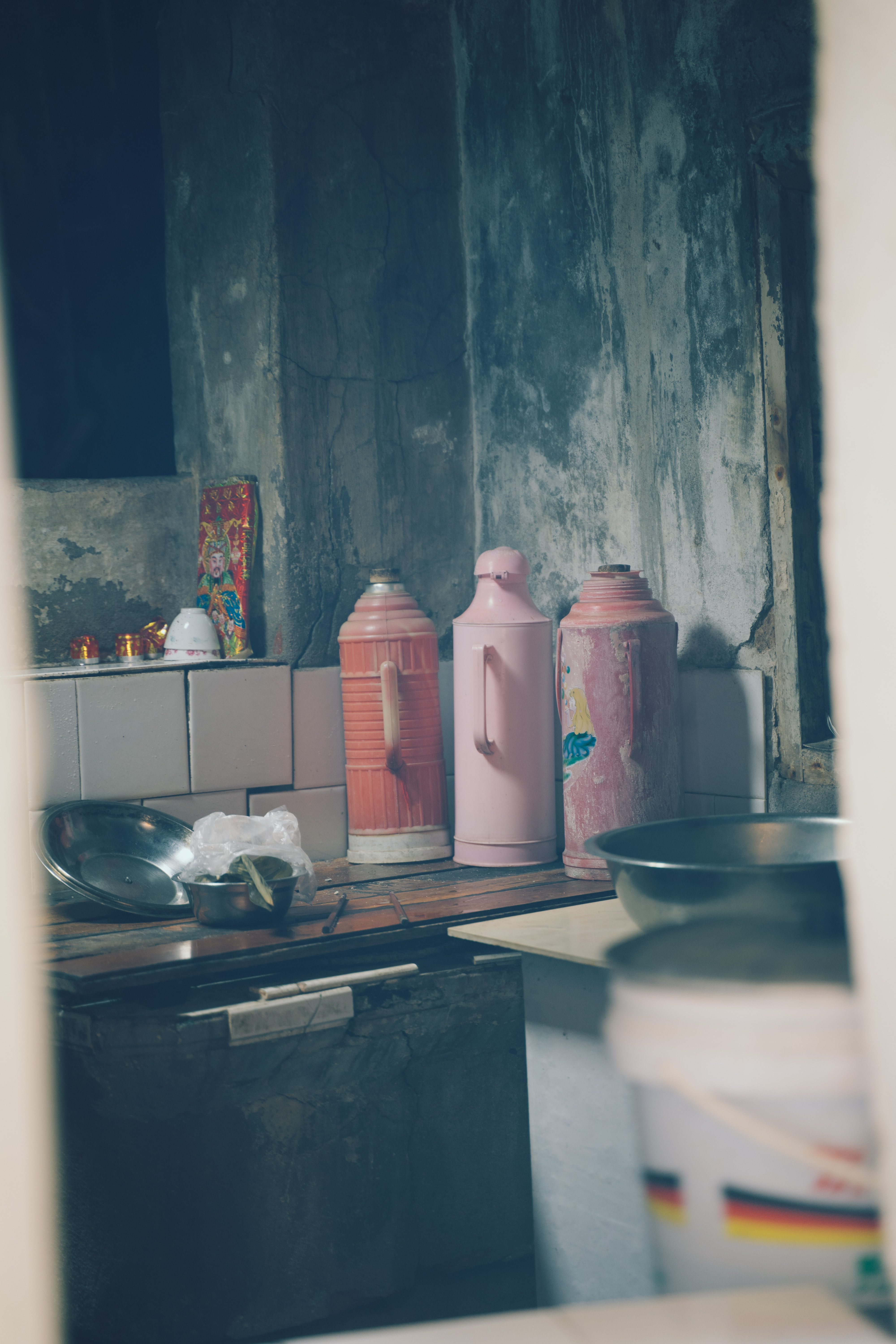 村子里的老人,依然过着我们儿时记忆中的生活。那些充满年代感的“热水壶”、三轮车、传统的洗衣方式、还有复古的商店、粮铺和米店,在边礁村随处可见。
