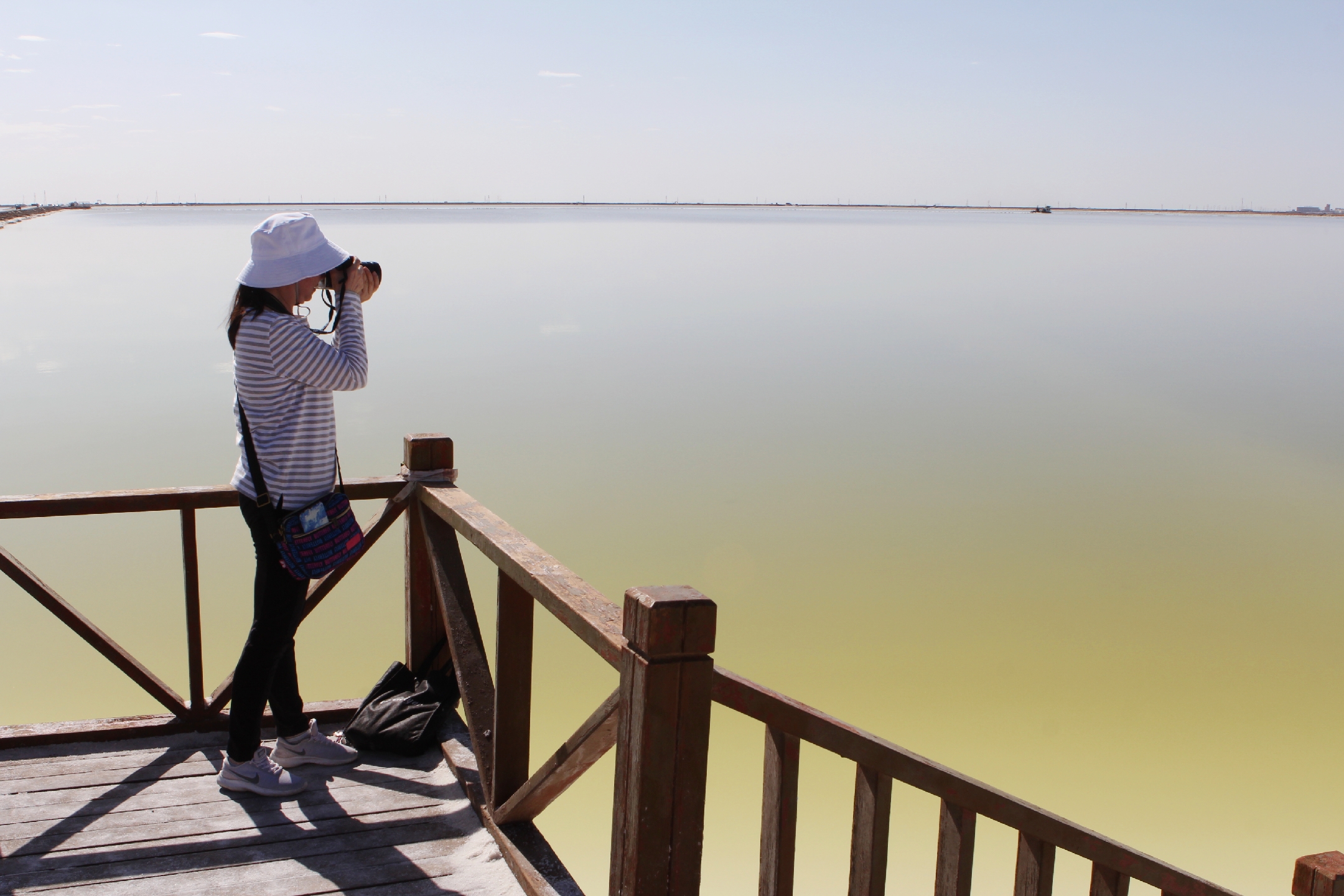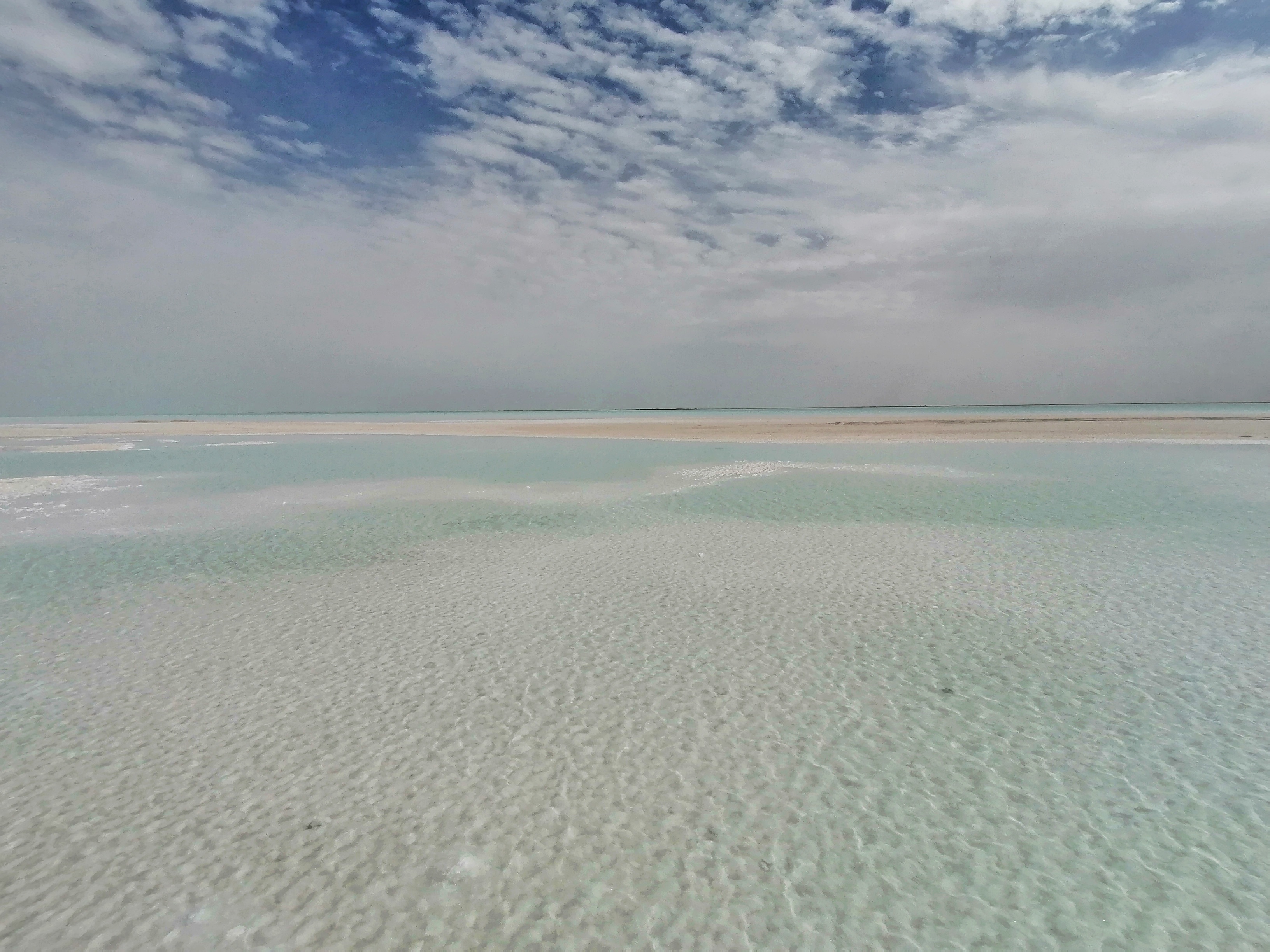 不到这里,不知道茶卡盐湖只有那么一丢丢。放眼望去,环顾一周,全是盐湖,天地相接,盐湖为媒。这哪里是湖,这分明就是海,还有白色的沙滩。