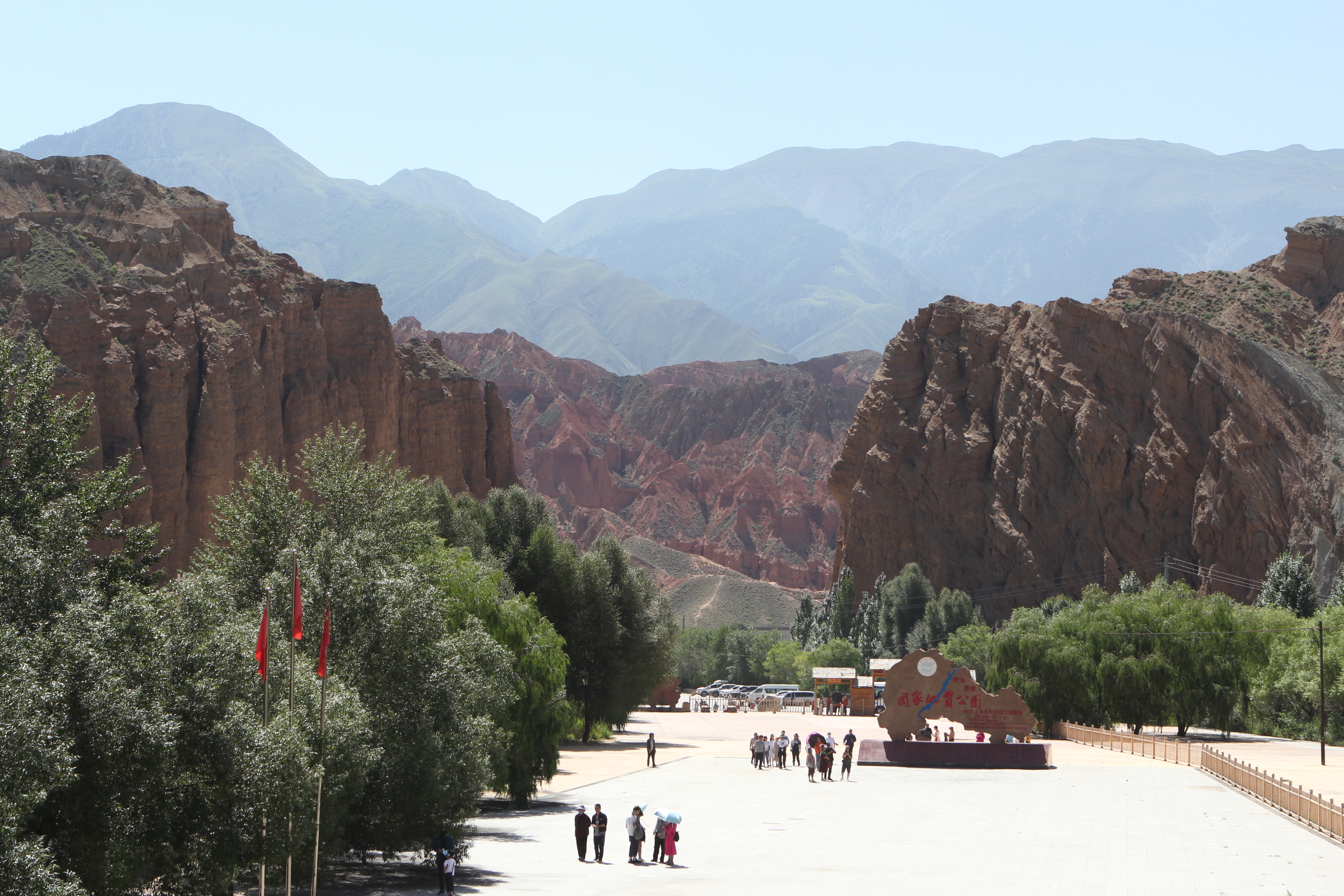 阿什贡峡的丹霞地貌,形成于1亿2千万年前,峡谷地处黄河北岸,两侧山峦夹峙,高耸入云,红的火红,青的靛青。山崖经亿万年的风沙侵蚀,形状各异,有的似老人久经风霜;有的似取经路上的唐僧师徒;还有多种动物造型,各种形状鬼斧神工、浑然天成、惟妙惟肖