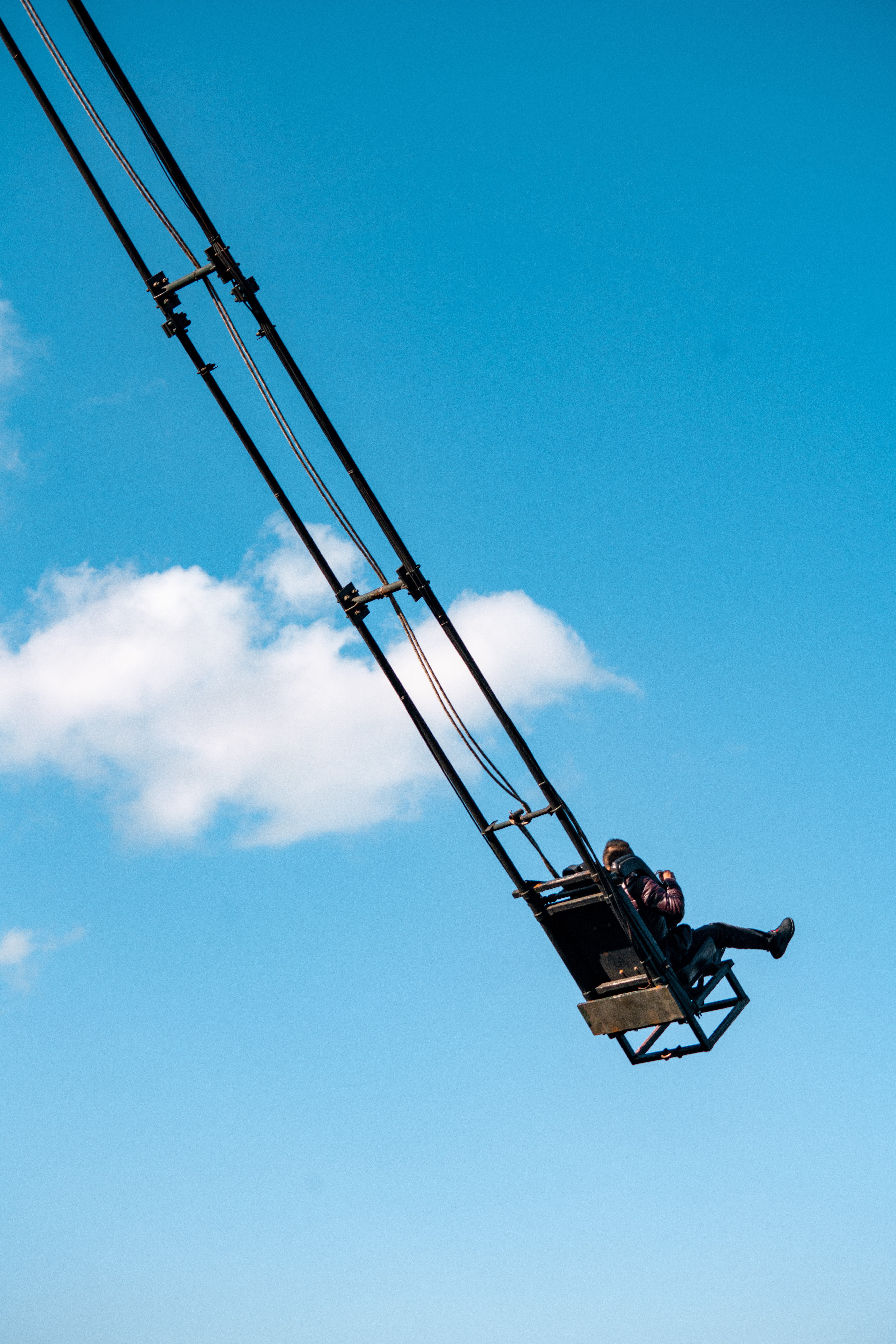 一个是天空悬廊的旁边,主要是18m和21m的两个恐怖秋千,路过时总能听到各种尖叫。号称荡到灵魂出窍的恐怖秋千,说说真实感受,那就是冲入云端。如果你也是一早就去了,远处的山间,还有能看到云雾翻滚,头顶时不时飘来几朵奇形怪状的云朵,那么你就一定能体会到我说的冲入云端的感觉。当桌椅背后的绳索断开,失重的向悬崖冲出去,知道几乎和地面九十度垂直的仰望天空,然后在失重般的滑落,不断重复,直至钟摆活动越来越小,整个过程,既害怕又兴奋,一定要去体验一下。