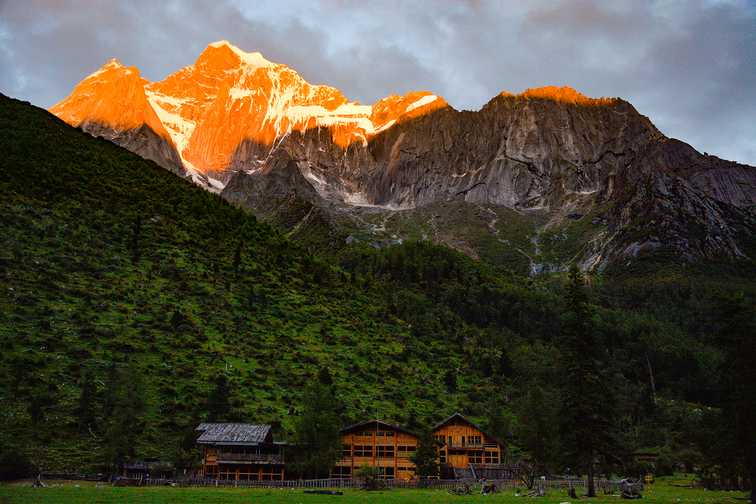 木骡子营地位于四姑娘山幺妹峰北壁之下,海拔3700米,是一处天然优质的高山草甸。在这样如诗如画的风景之下露营,别提有多美了。