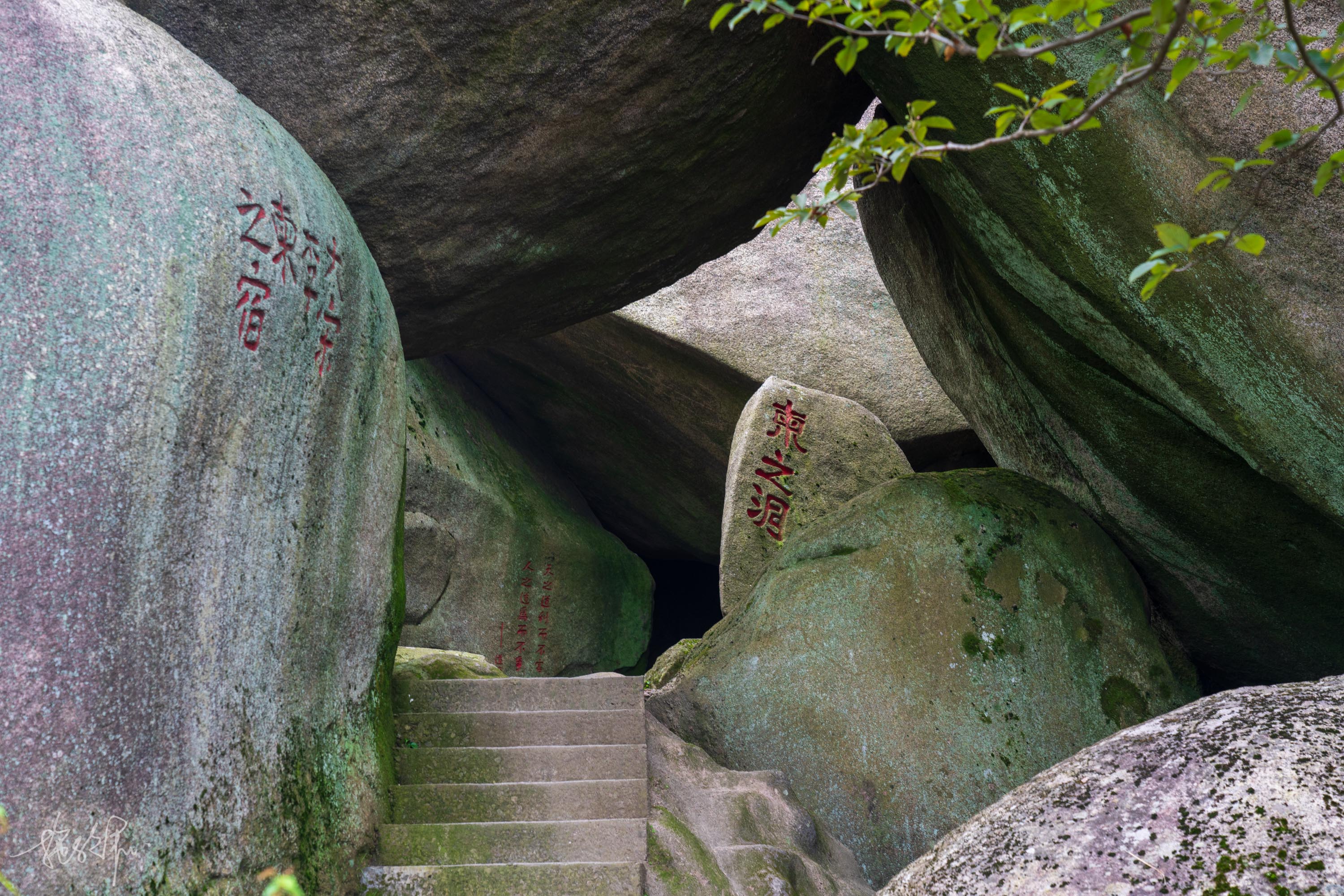 不久便来到了神秘谷,天柱山有名的岩洞想必就是这里了,号称花岗岩洞第一秘府。走过龙宫、逍遥宫,发现神秘谷内到处都是洞穴,洞中有洞,洞洞相连,幸好是成熟景区,跟着路标就能走到出路,要不还真觉得会迷路呢。