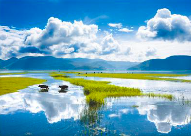纳帕海草原——纳帕海是个季节性的湖泊,在云南香格里拉城西北8公里处,那里也是个山间盆地。海拔3266米,面积约为3125平方公里,被列为自然保护区。每当秋季来临,许多飞禽便光顾这里,各种水鸟在灌林中“啾啾”地鸣叫着,有红嘴鸥、斑头雁、麻鸭。高原珍禽黑颈鹤也从青藏高原的腹地飞来这里过冬,它们若无其事地生活在牧人的帐房旁边,构成非常和谐的自然景观。