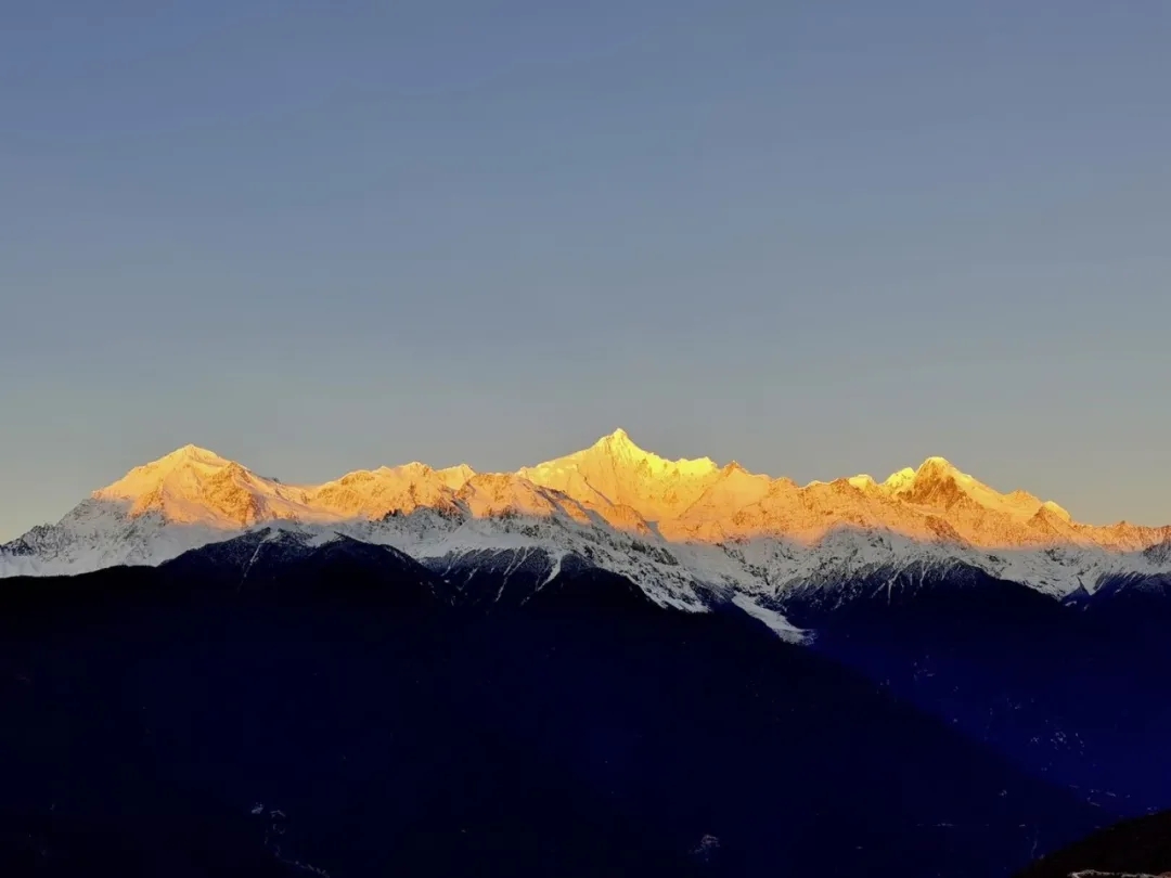 梅里雪山的日照金山---十人九不见的日照金山,身披金甲的卡瓦格博,为了等待与你的相遇,转山转水转佛塔,只为在路上遇见你。