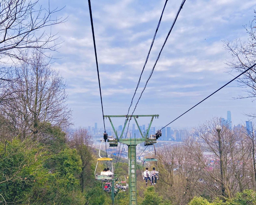 和之前在黄山,三清山坐的缆车不同,岳麓山的索道是很开放式的缆车🚠,可以看上图,只能同时做两个人,很惊险很刺激,刚开始的时候我们其实还挺害怕的,慢慢的发现空气越来越清新,视野越来越开阔,也就慢慢的没那么害怕了,不过一定要注意拿好自己的随身物品,一不小心你的东西就很可能掉到丛林中,到时候很难找到的。
