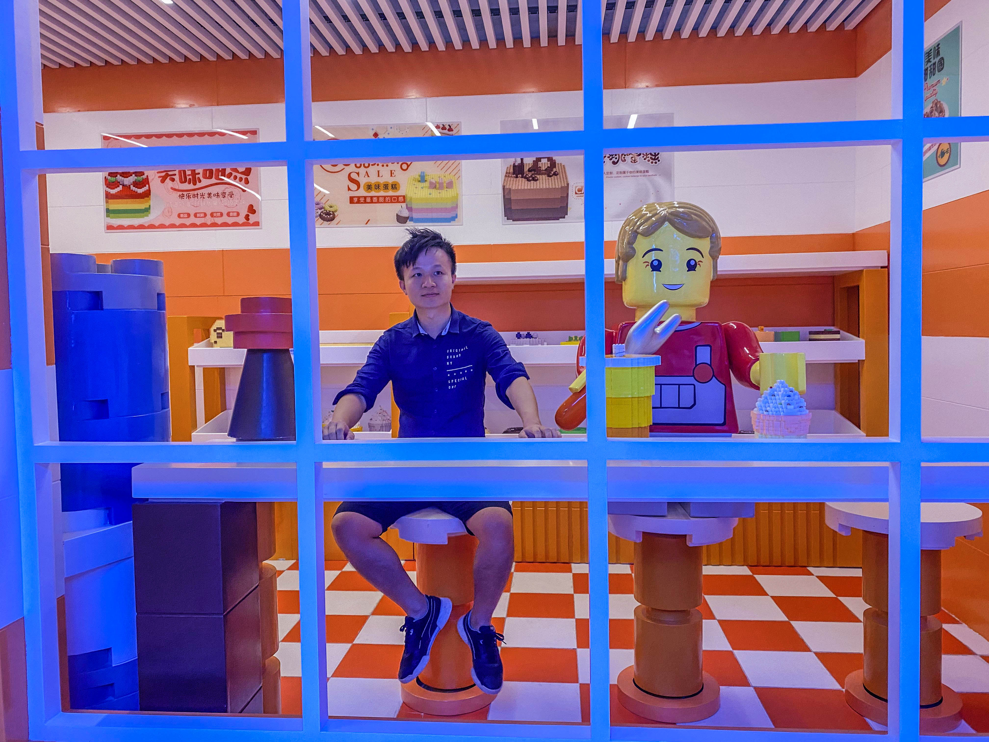 3楼积木王朝刷新了我对乐高的认知,真的被这个大型乐高街区震撼到了,半个人高的乐高人偶,加上全部由乐高堆砌的场景、建筑——花店、银行、警察局、雪糕车、蛋糕店、理发店……太酷了,想成为这里的原住民。
