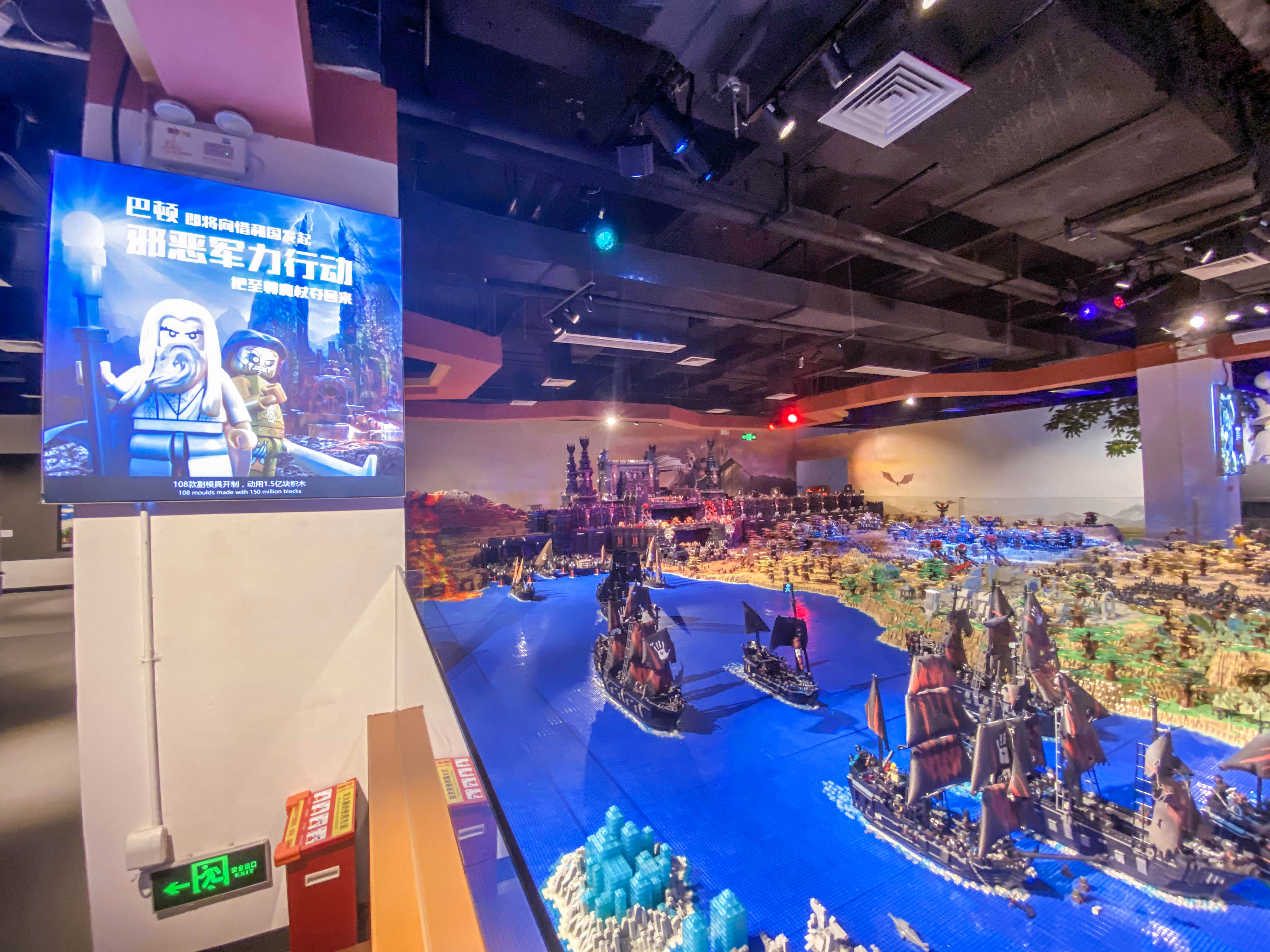 中古世界积木大沙盘在积木街去隔壁的场馆里,很壮观,特别是这个海盗城堡,在梦幻的紫色灯光下闪耀着,黑暗势力的压迫感油然而生。
