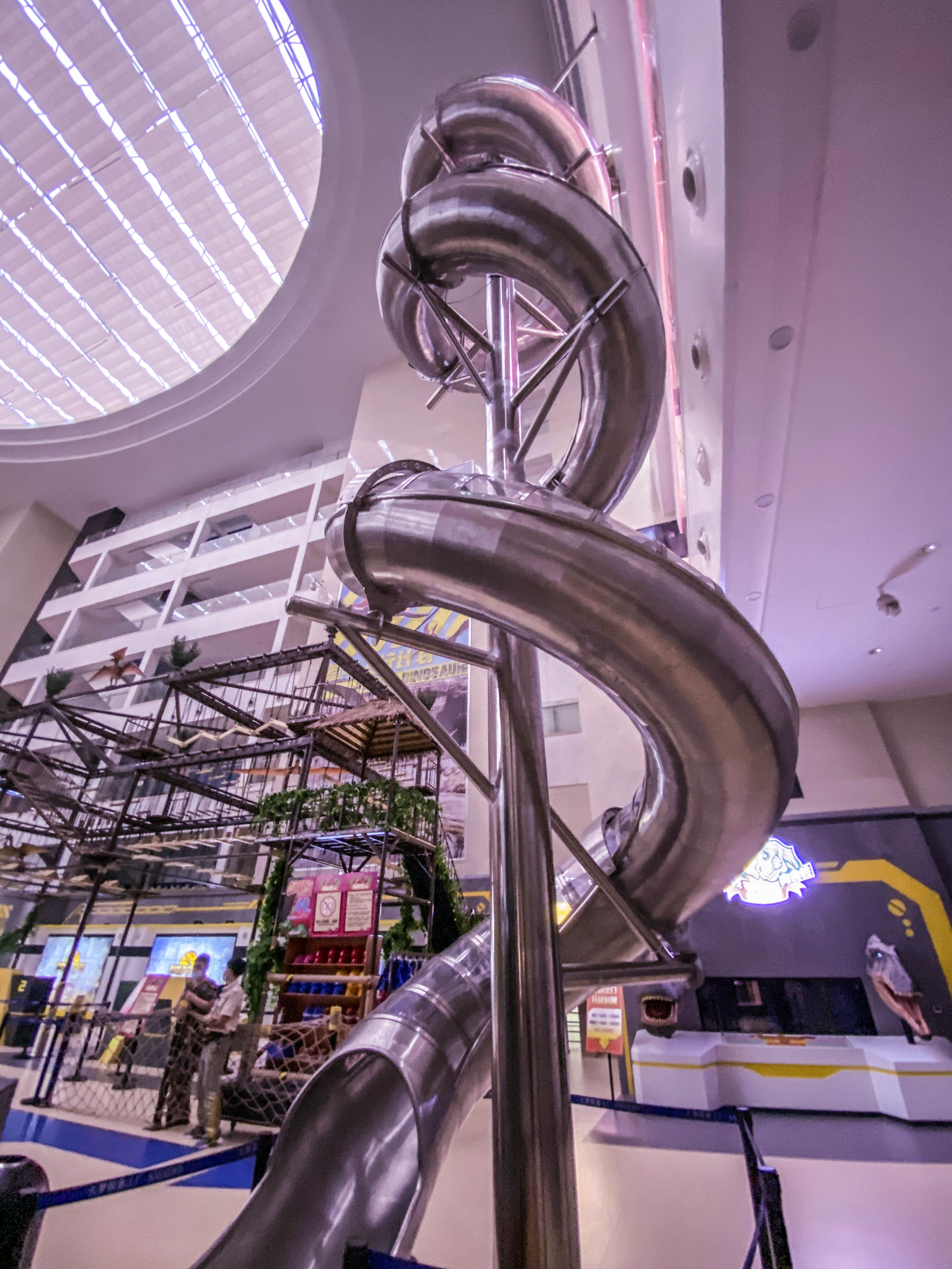 除了8大场馆,还有其他一些项目也值得一试, 比如 3楼的大滑梯,几秒内从3楼旋转而下直至1楼,相当刺激。