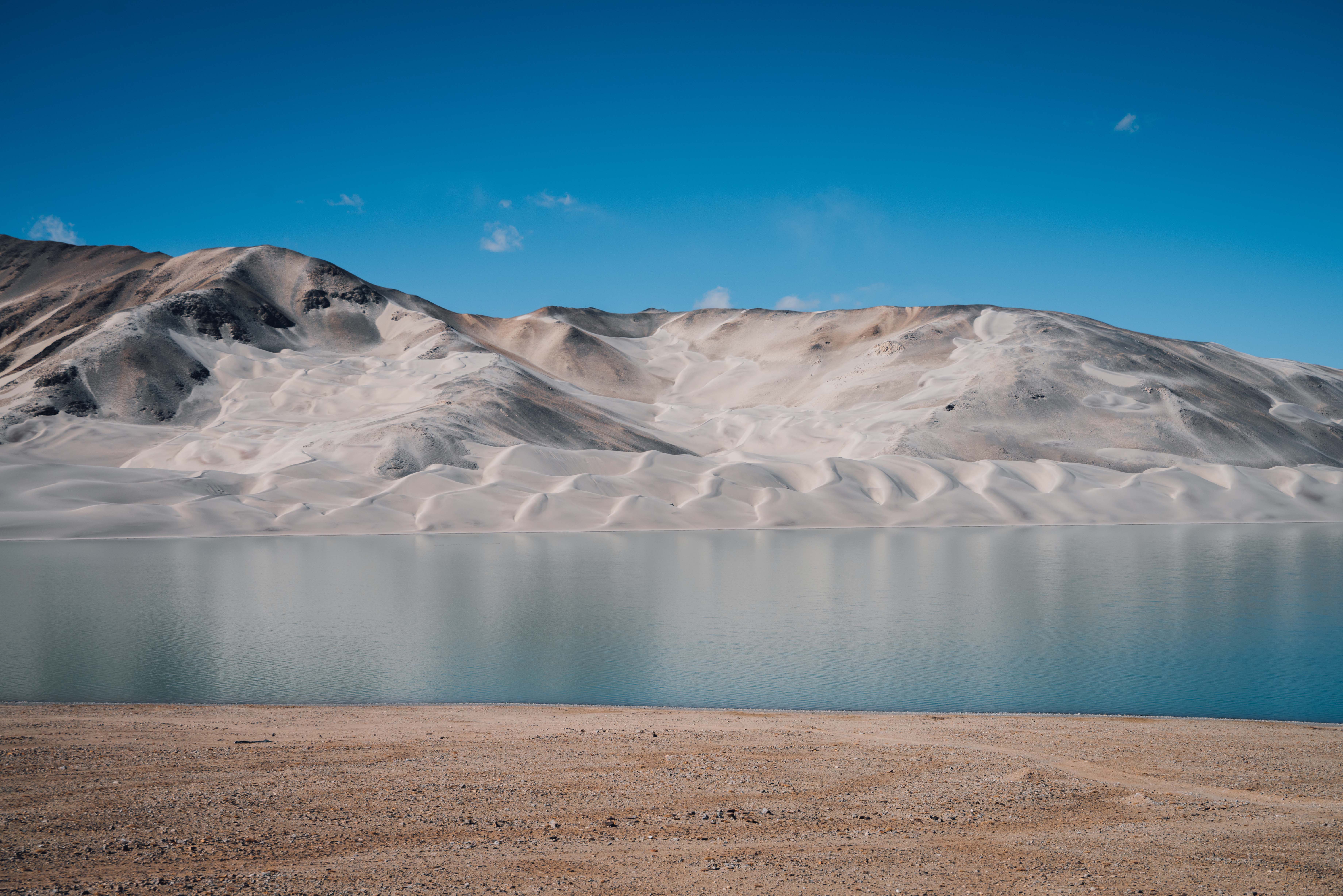 到塔县必然会路过的一个美丽的湖泊。很多年前的白沙湖水域面积并没有这么大,柯尔克孜族的老乡们三三两两的帐篷扎在周边,湖水的面积被零散地分割着,一汪一汪的,像散落着的大小不一的明镜。然而当时的白沙湖也不是湖,而是两条河水交汇形成的沼泽地。今天看到的白沙湖,老百姓已集中连片定居,当年小水泡子似的分割湖水已连成一片,同时建了水库将两大水系存储起来,集中调控,也造就了这一美丽的景色!白沙湖也像一块明镜照耀着群山。