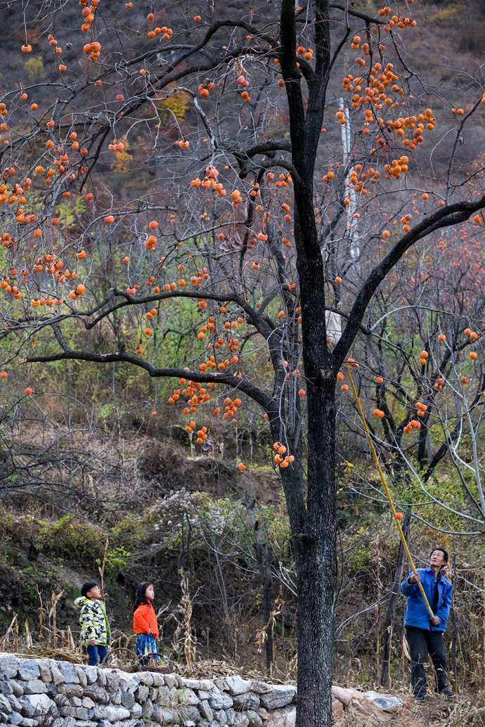 山间多得是十几年的柿子树,澄黄可爱,秋天打柿子,刚刚到手就迫不及待享用起这甜滋滋的美味。还有特产花椒树,摘下一颗嚼一嚼,Emmmm,这妙不可言的滋味,不亲自尝尝都不行,哈哈~~梯田山坡上散落着15座民宅改建的民宿——麻麻花的山坡,管家大姐的拿手的豆角焖饭,只有在这里才能吃到哦。