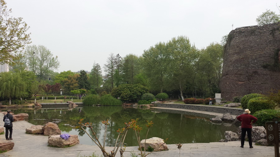 离开通济门遗址,8:55来到东水关遗址公园,此时又见城墙。