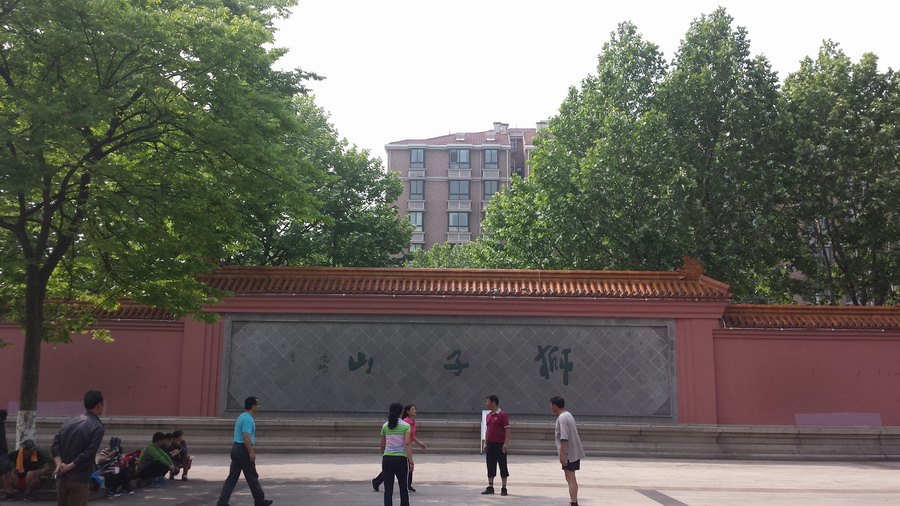过太平门之后跨龙蟠路进入中山陵风景名胜区,经历近8h徒步,同学们感觉有些疲劳,在白马公园门前稍息。
