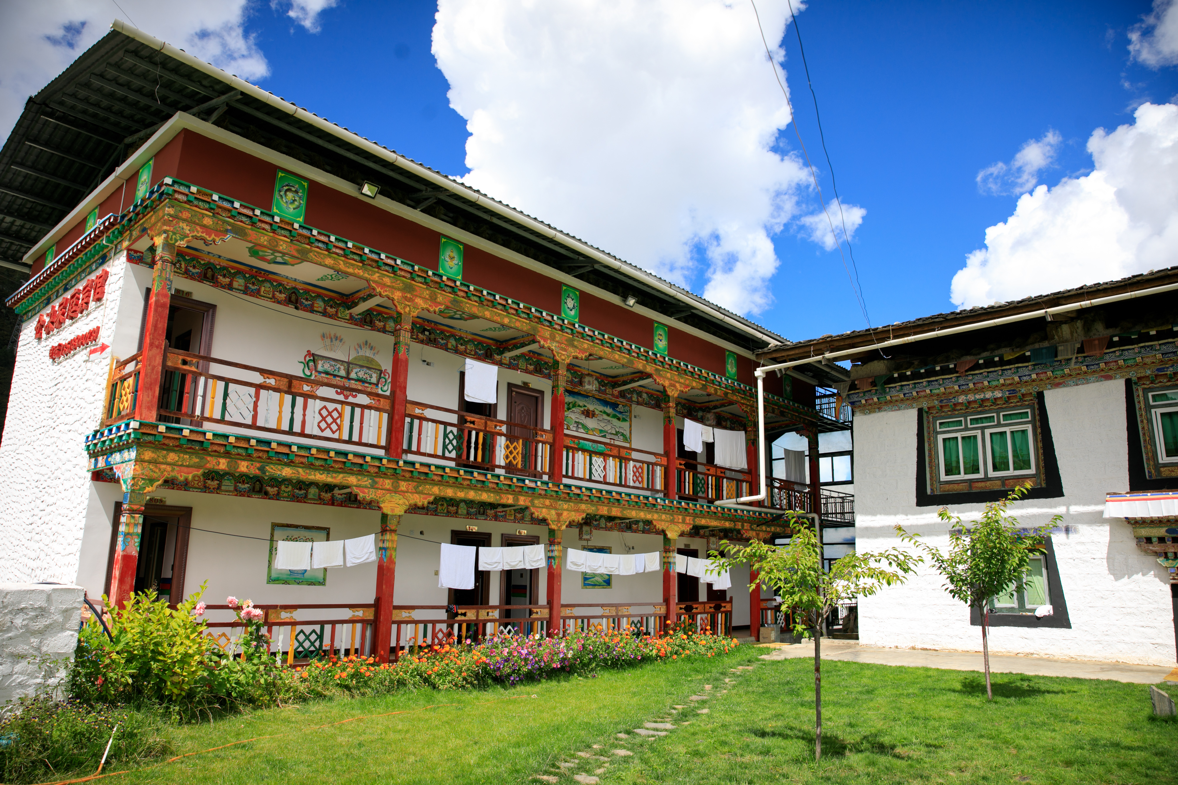 身处这藏式小院,迎风飘扬的五星红旗,夕阳下窗边低吟浅唱的燕鸣鸟语,热气腾腾的藏式晚餐结束以后,跟藏族同胞一起跳锅庄,感受当地的民俗文化,也是一种非常有意思的活动。