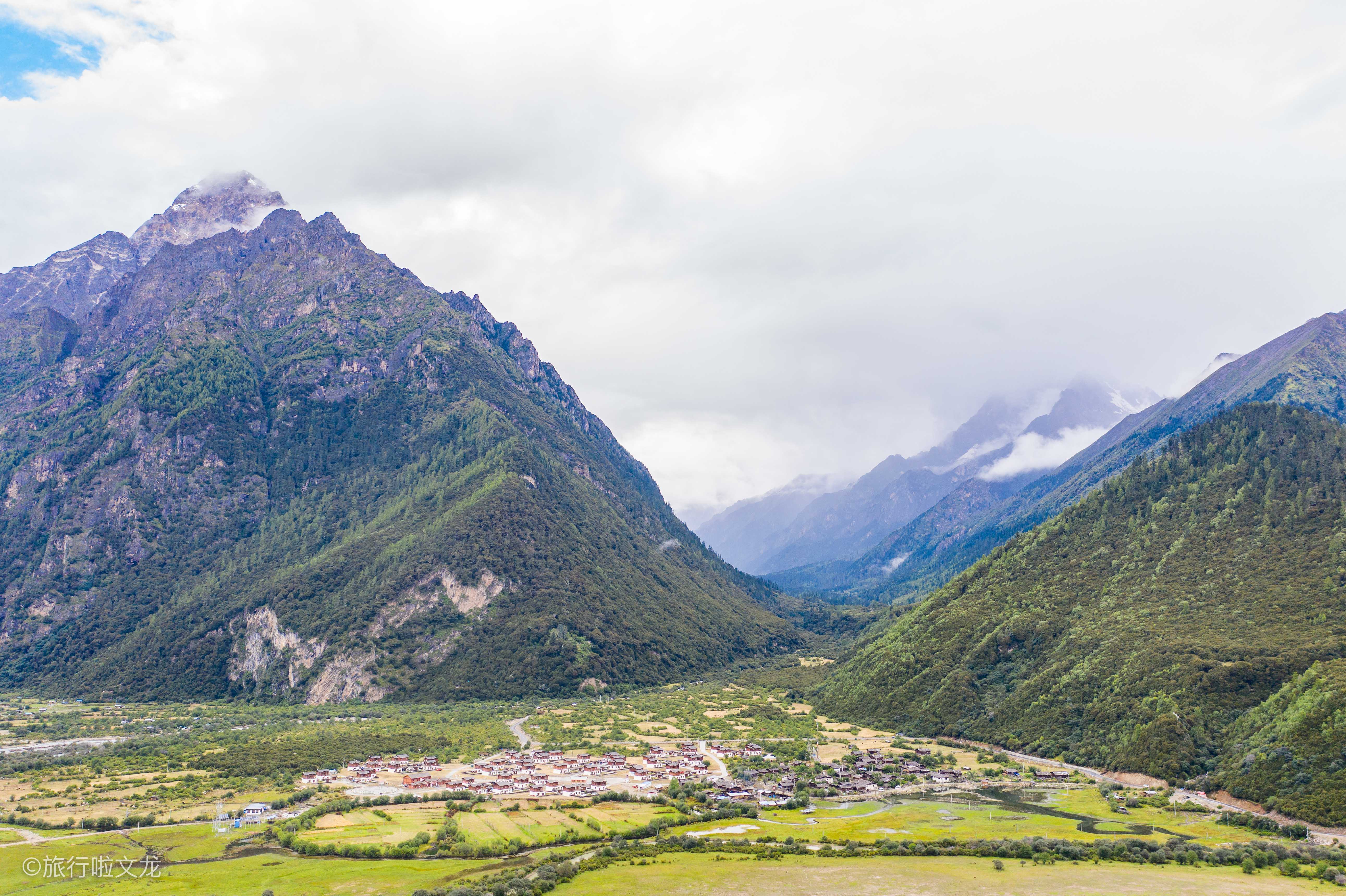 这里居住的人是偏少,来这里的游客也并不是很多,这样一个小众的景点屹立在山峦之间,山峦郁郁葱葱,自然的想到是属于神仙所居住的地方。全村的周边有着终年不化的雪山,雪山就威风凛凛的屹立在那处。山间便是树木郁郁葱葱的开放着,四季常青,这样的原始森林有着云遮雾绕,宛如仙境一般。小河不规则和蜿蜒曲折的在村庄的四周静谧流淌着,好一派全村依山傍水的风景画。