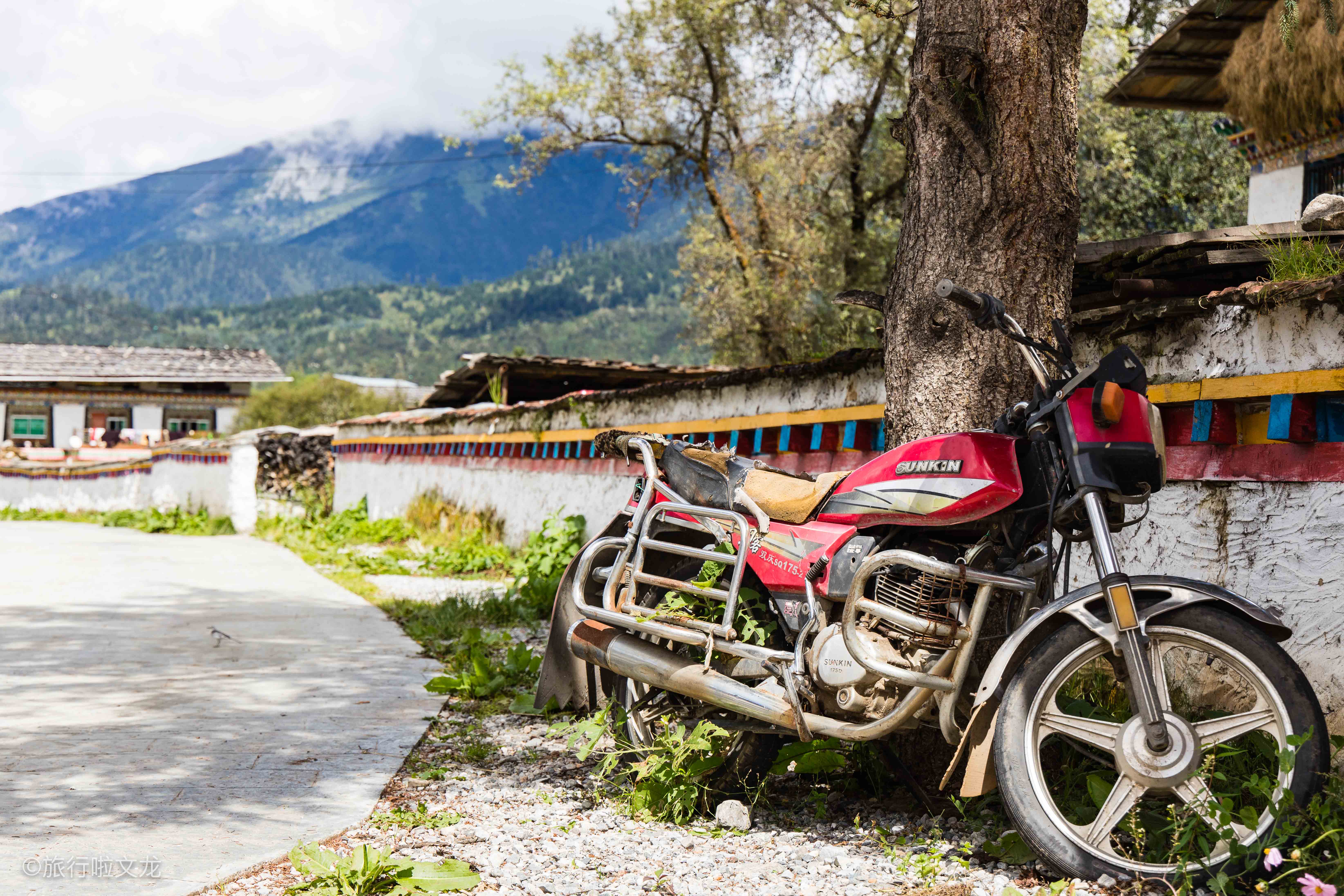 在村头我看到了一辆破旧的摩托车威风凛凛地屹立着,然后这里的房屋有很多也是采用了瓦房的结构,还有茅草混合其中,复古的房屋总能引起对昔日生活的回忆,像这样的房子已经并不多见了,我感觉只有在这样的原始村落里面才能够见到这样的房屋。