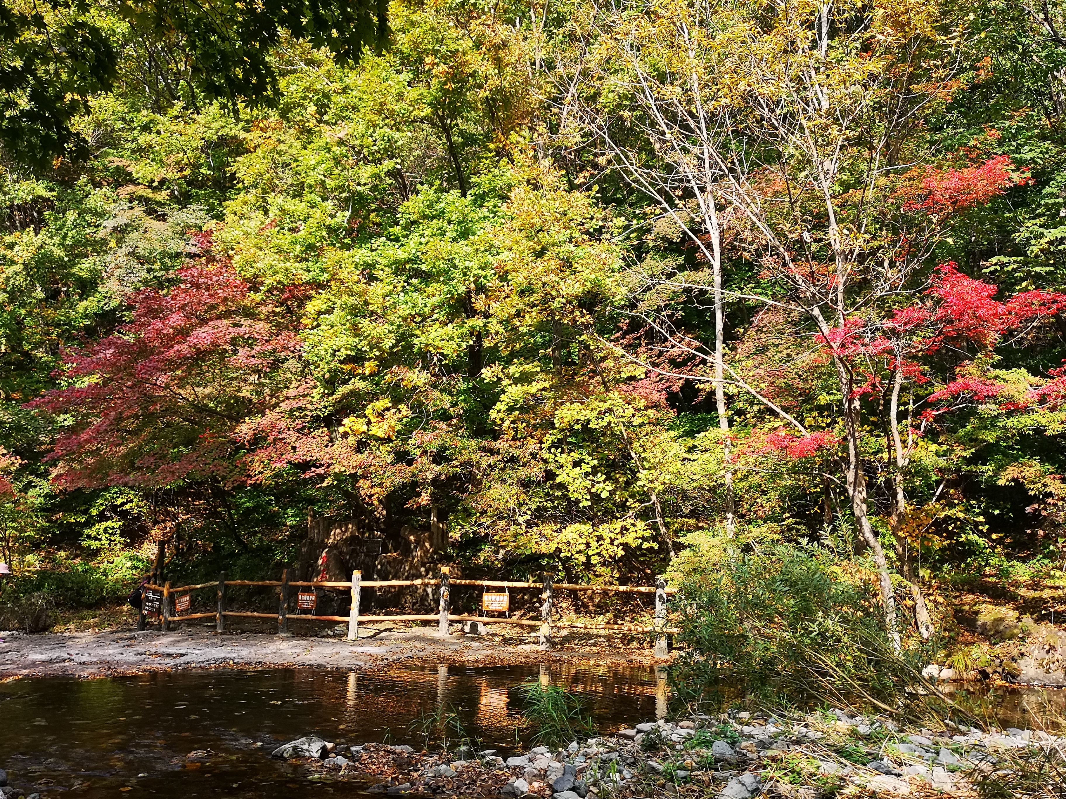 下午沿着中华枫叶大道从辽宁前往吉林通化市,公路两旁的山峦不时会出现漫山红叶,引来团友们阵阵尖叫声。