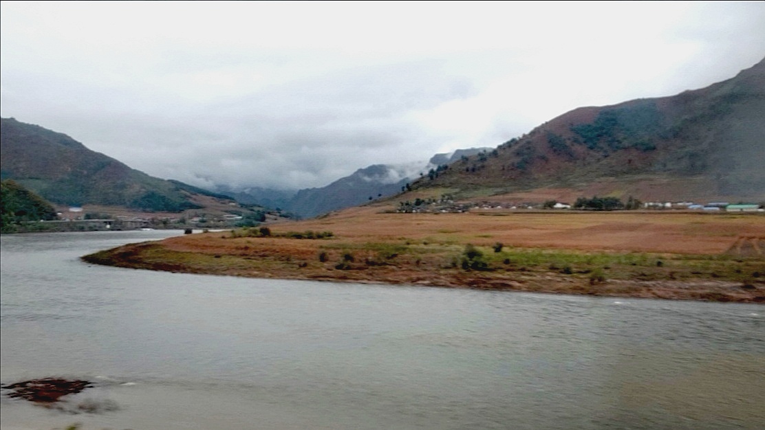 鸭绿江是中国和朝鲜的分界河流,全长795千米,流经我国吉林省和辽宁省,其中吉林省部分575千米,辽宁省部分220千米。出乎我们的想象,我们所看见的这条界河大部分只有100~200米宽。据说两国人民在江里不算越界,只有上岸才算。由于长期缺乏粮食,朝鲜人民自力更生在山上开荒种地。我国的长白县与朝鲜的惠山市(第三大城市)隔江相望,夜晚的长白县城灯火辉煌。
