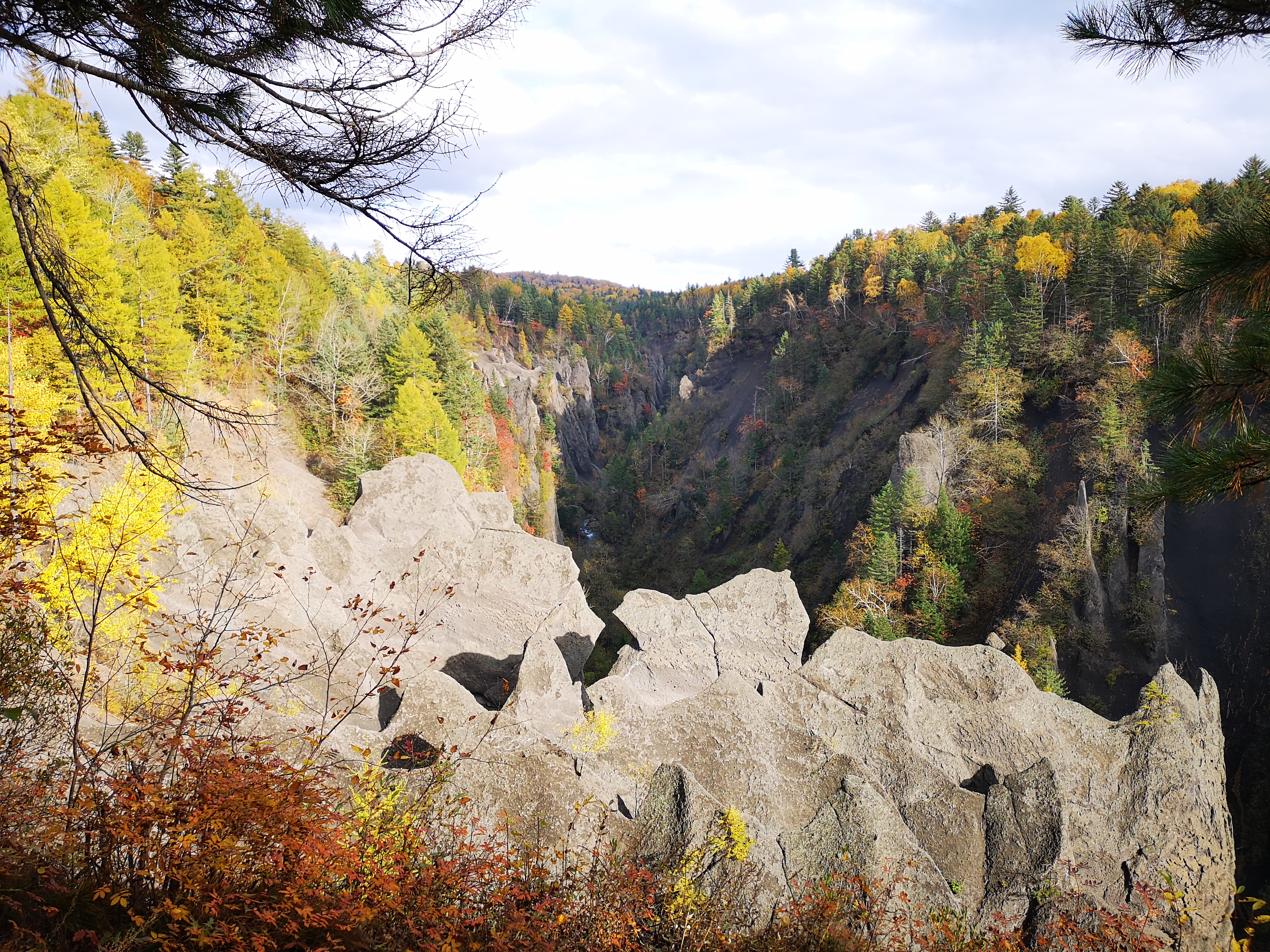 今天一早离开吉林通化市,沿着中朝边境公路前往望天鹅“十五道湾”景区。景区内怪石林立,均为上亿年前地壳变动和火山熔岩生成,诸如“天书展册”、“千手观音”、“天梯”等等,令人拍手称奇。其中六角形的天然石柱与北爱尔兰海边的石柱极其相似。山谷里(小)瀑布不时出现,树木五彩斑斓,就像将颜料盒子打翻了似的,美不胜收。