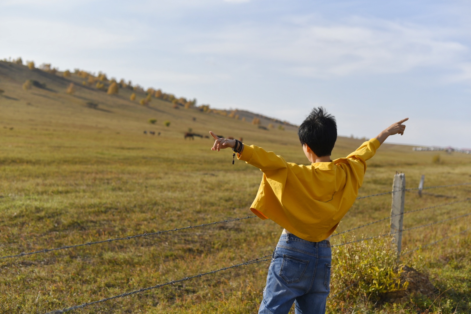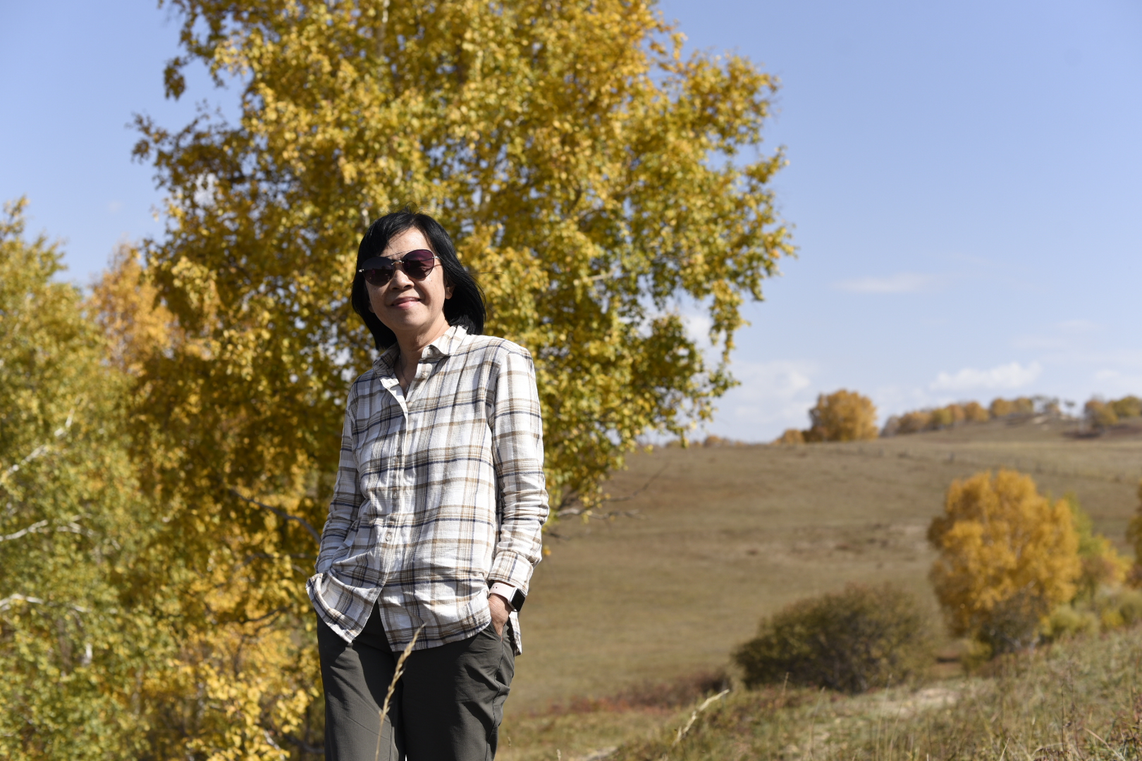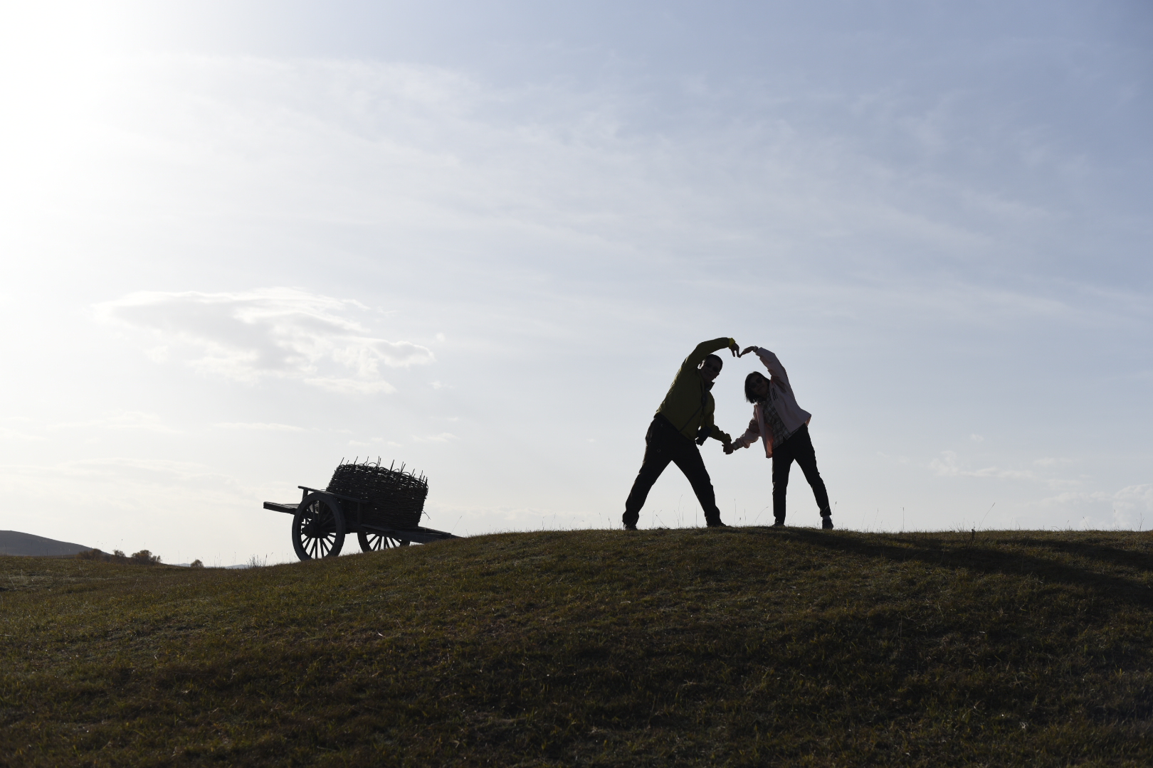 站在草甸的高处,背着太阳来一个剪影照,也是另一种美。