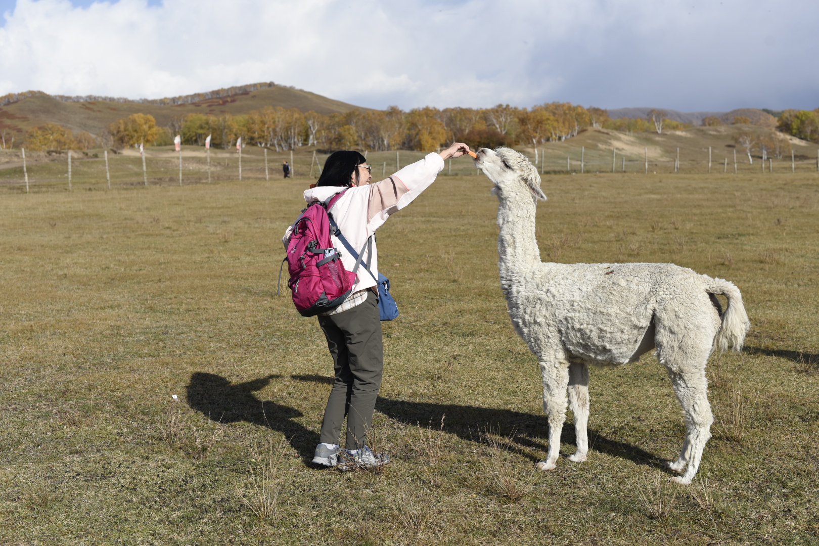 草原上的体验新奇多样,除了传统文化外,近距离接触羊驼与鹿群,并给它们喂食也是不可错过的愉悦体验。
